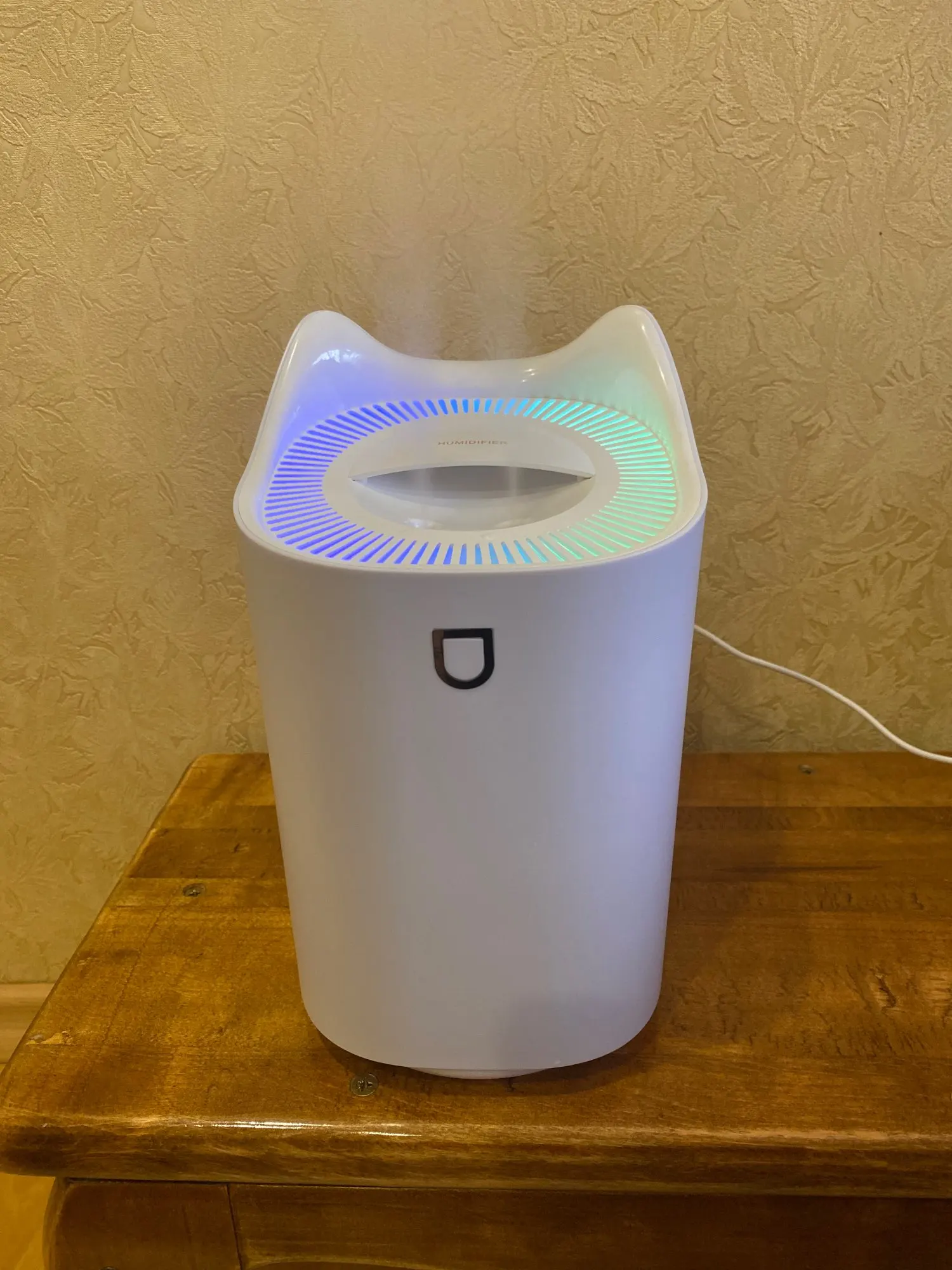 Сделан качественно, работает четко, подсветка красивая! Кнопкой можно включать - отключать подсветку, запускать одну или две струи пара на выбор. Из минусов - не запоминает состояние после отключения питания, при подачи тока на розетку - всегда в отключенном состоянии, пока не нажмешь кнопку. Хотел использовать в сценариях умного дома, но не судьба - в остальном отличный товар. Продавца рекомендую!