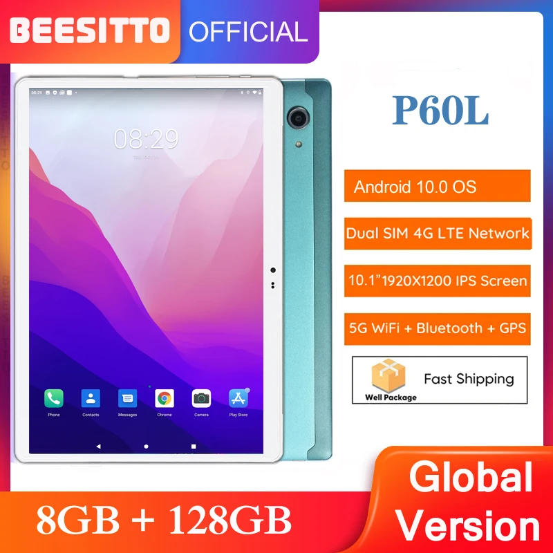 Планшет P60L Pro, 10 дюймов, 8 + 128 ГБ, android, 8 ядер, Android 10,0