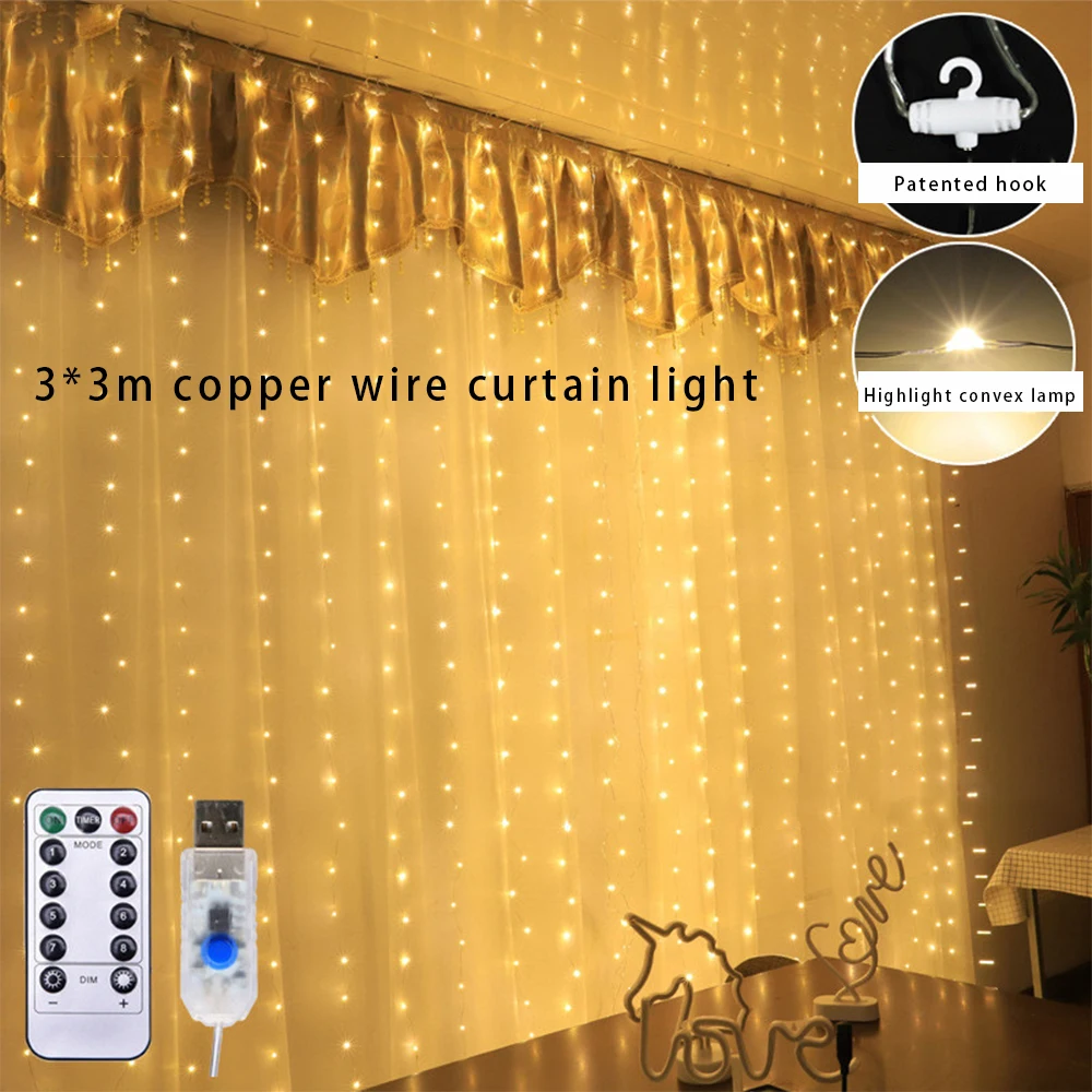 3*3м 300 огней, Рождественское украшение, светодиодные занавески, usb, многофункциональная гирлянда с дистанционным управлением и медным проводом, украшение для дома новогодние украшения 2022 новогодний декор декор