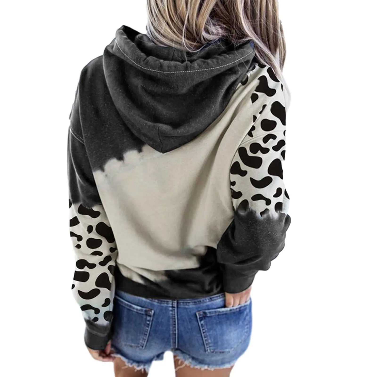 2021 модный Женский свитшот с длинным рукавом с цветным блочным принтом коровы и карманами толстовка с капюшоном F Популярные принты в Европе и родственности