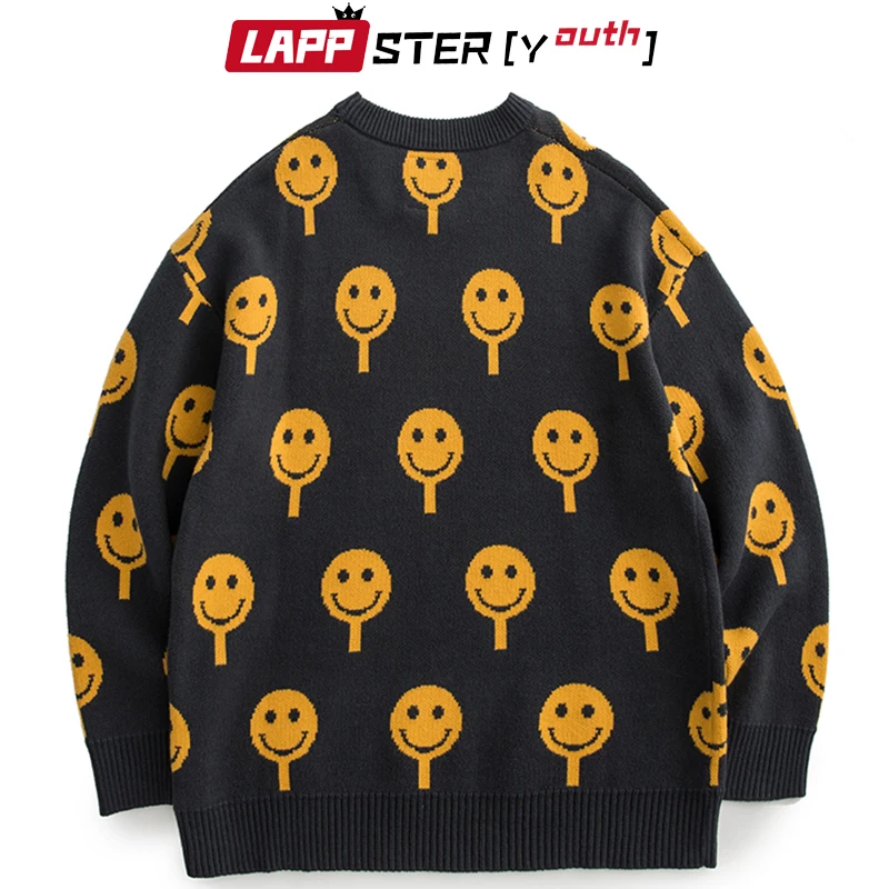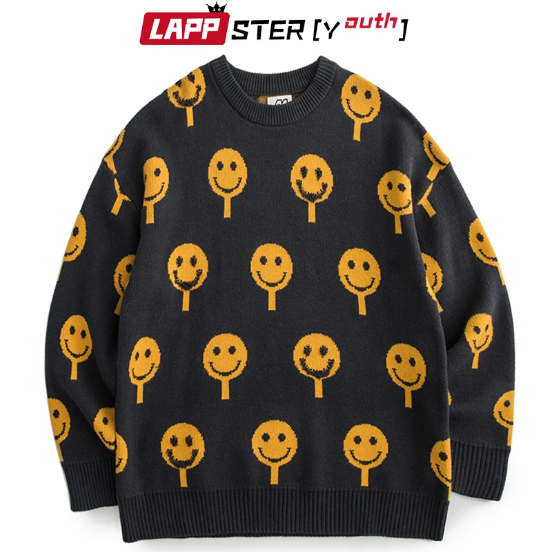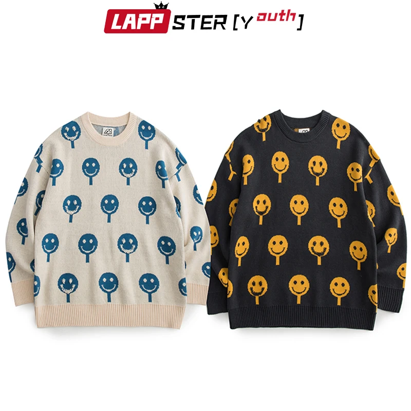 LAPPSTER-Молодежные мужские пуловеры в стиле Харадзюку с улыбающимся лицом 2022 мужские Японская уличная одежда винтажные свитеры мужской оверсайз кавайный свитер