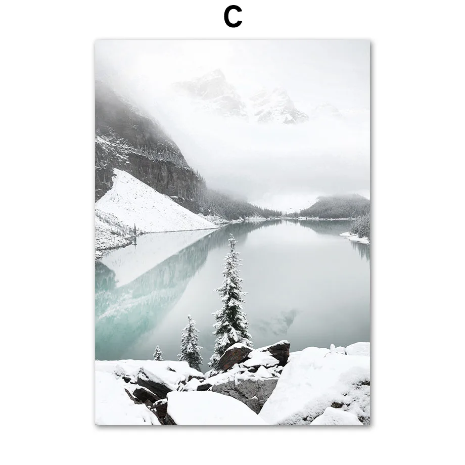 Настенная картина в скандинавском стиле с изображением зимнего пейз...