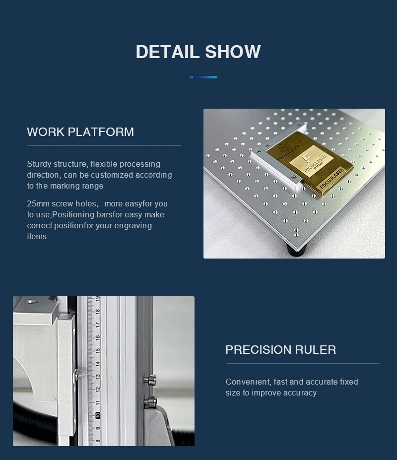 Прочная структура, гибкое направление обработки, может быть настроена в соответствии с маркировочным дальномером. 25 мм Винтовые отверстия, более легко для вас использовать, позиционирование барспс легко сделать правильное позиционирование для ваших гравировальных изделий.