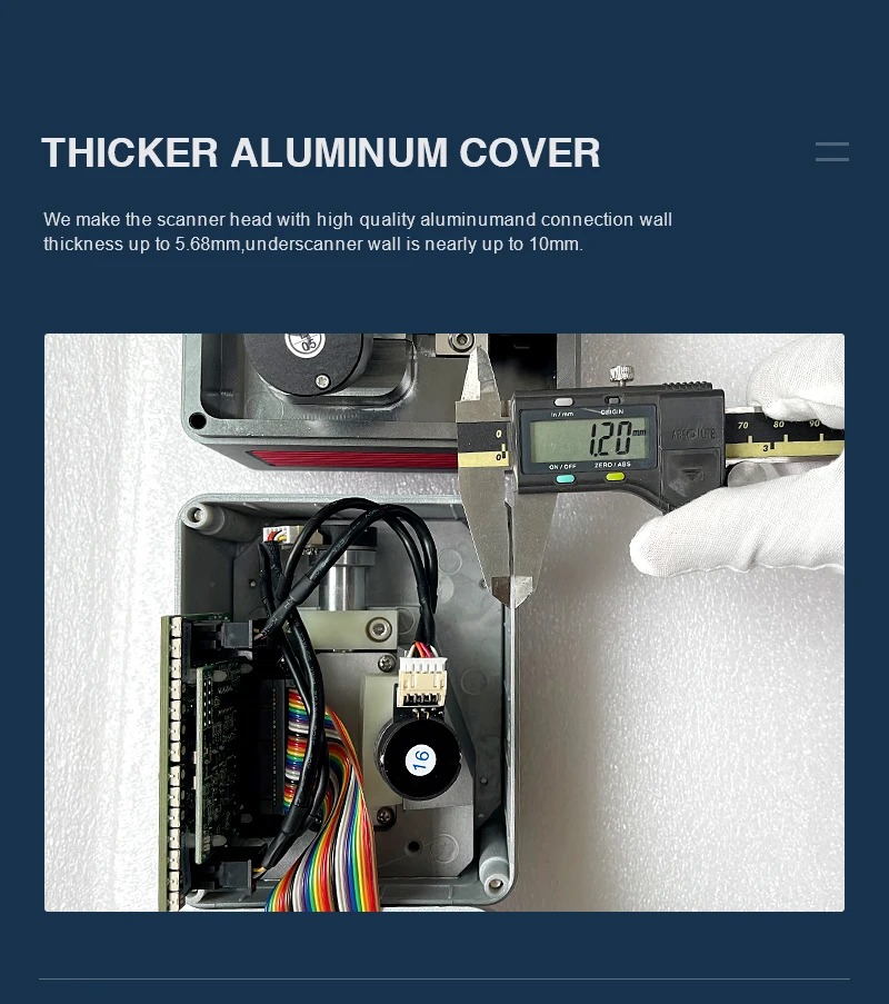 Мы делаем головку сканера с высоким качеством алюминиевых соединений толщиной стенки до 5,68 мм, нижняя стенка сканера составляет почти до 10 мм.