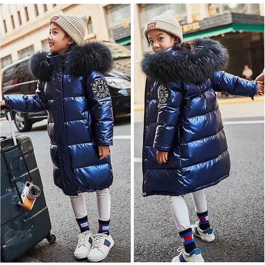 Русские зимние пальто для девочек на-30 , толстая одежда, стандартное водонепроницаемое уличное пальто с капюшоном для мальчиков-подростков, Детская парка, куртки