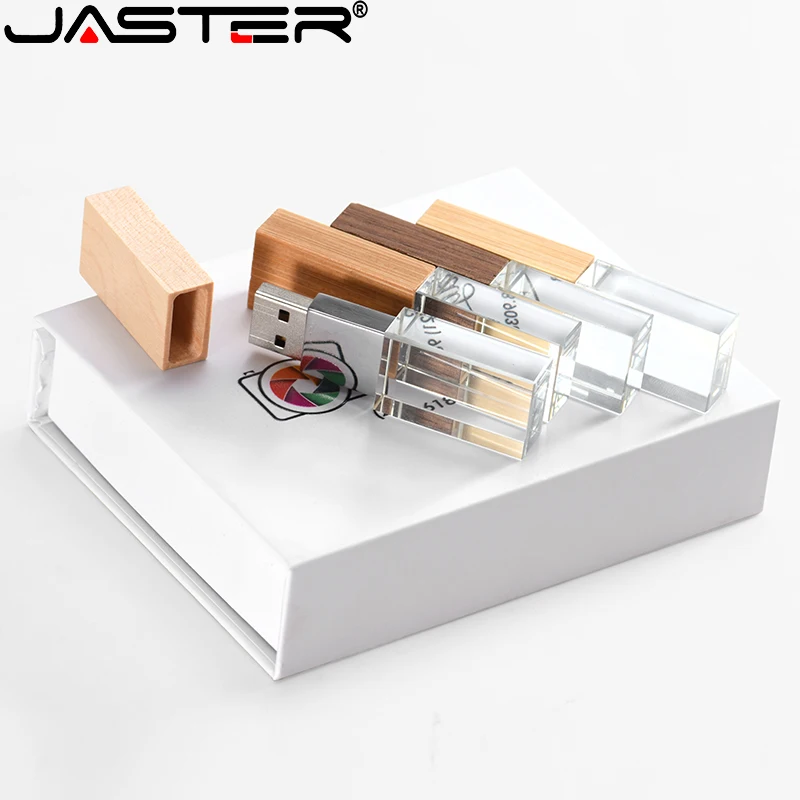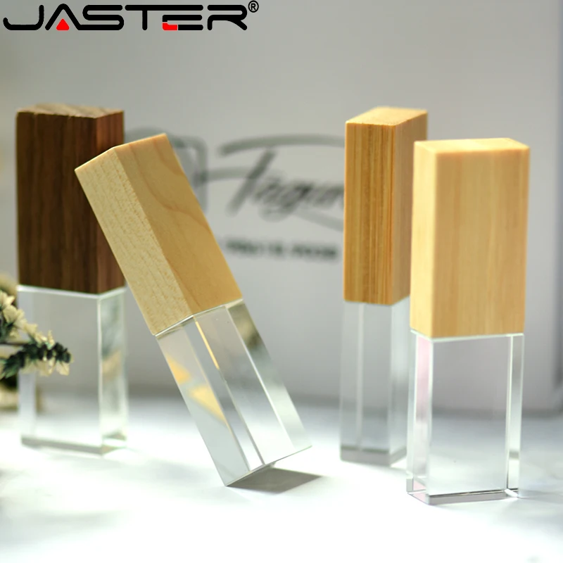 USB флеш-накопители JASTER, дерево, кристалл, ручка-накопитель, Пользовательский логотип, карта памяти, цветная печать, флешка, 4 ГБ, 8 ГБ, 16 ГБ, 32 ГБ, 64 ГБ, 128 г, реальная емкость u-диска