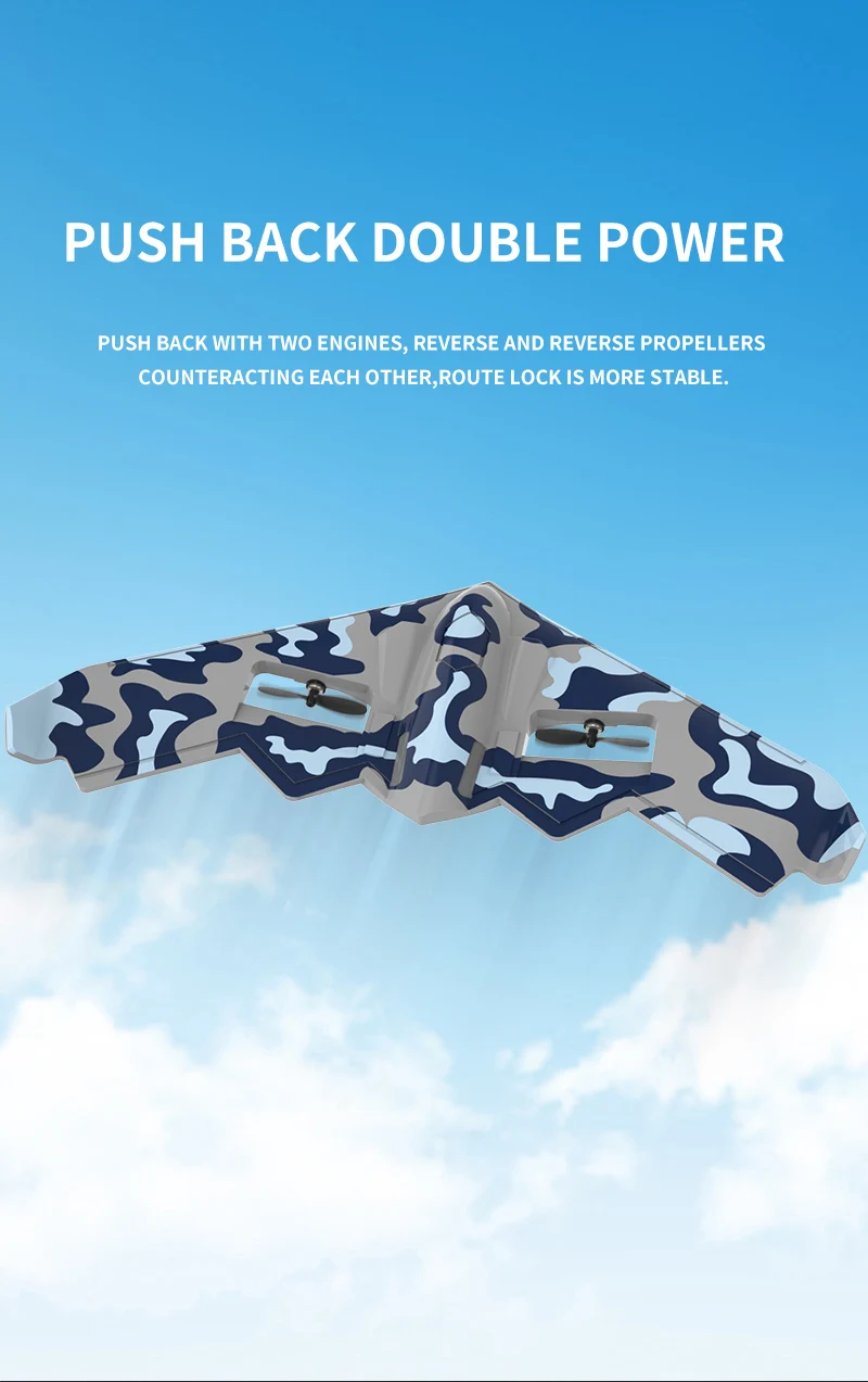 1. Имитирует B-2 бомбардировщика2. Материал: Изготовлен из высококачественного прочного EPP, который делает его светильник.3. Простота сборки: быстрая и простая сборка4.2.4Ghz контроль: сильная защита от помех, что позволяет ему ездить на большом расстоянии.5. Высокая производительность: высокий крутящий момент и мощный двигатель
