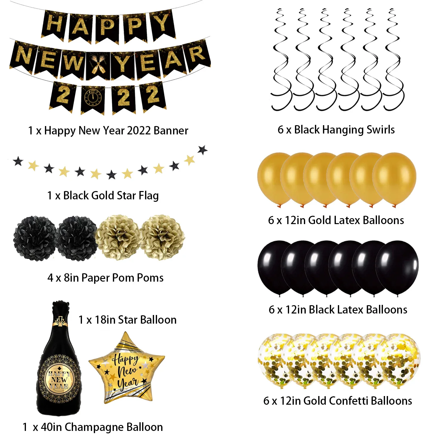 Новый 2022 год набор черных золотых воздушных шаров новогодние букв...