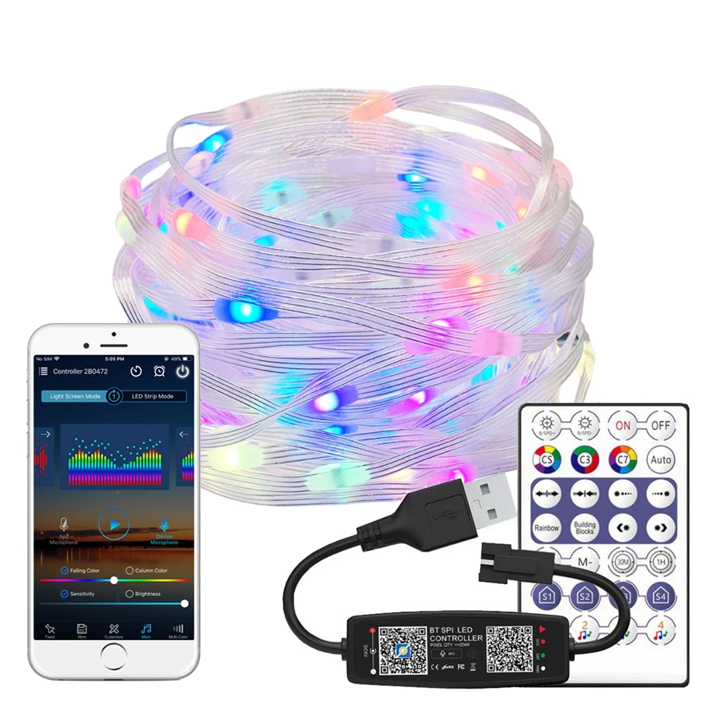 Рождественская светодиодная гирлянда WS2812B RGB WS2812, индивидуально Модифицируемый светодиодный модуль с индивидуальной IC Dream, USB, Bluetooth-контроллер, 5 в постоянного тока