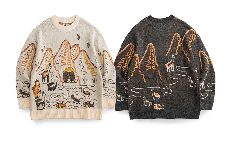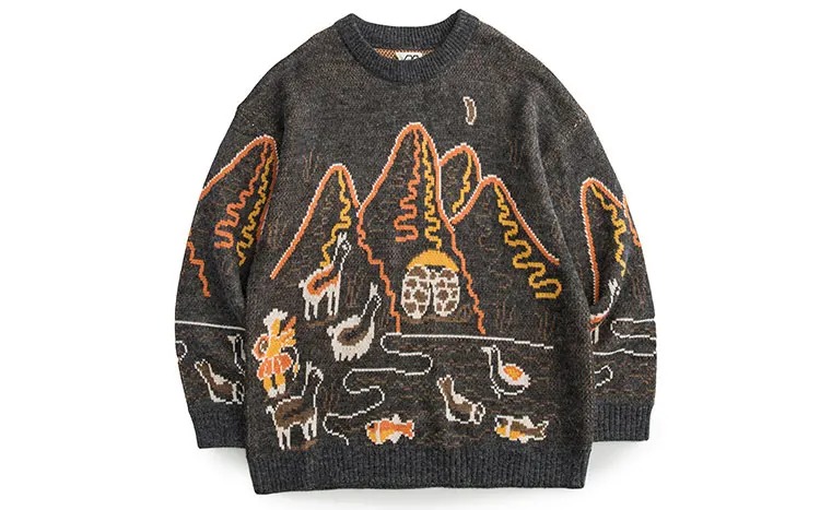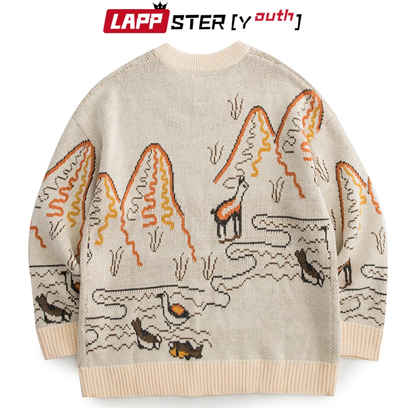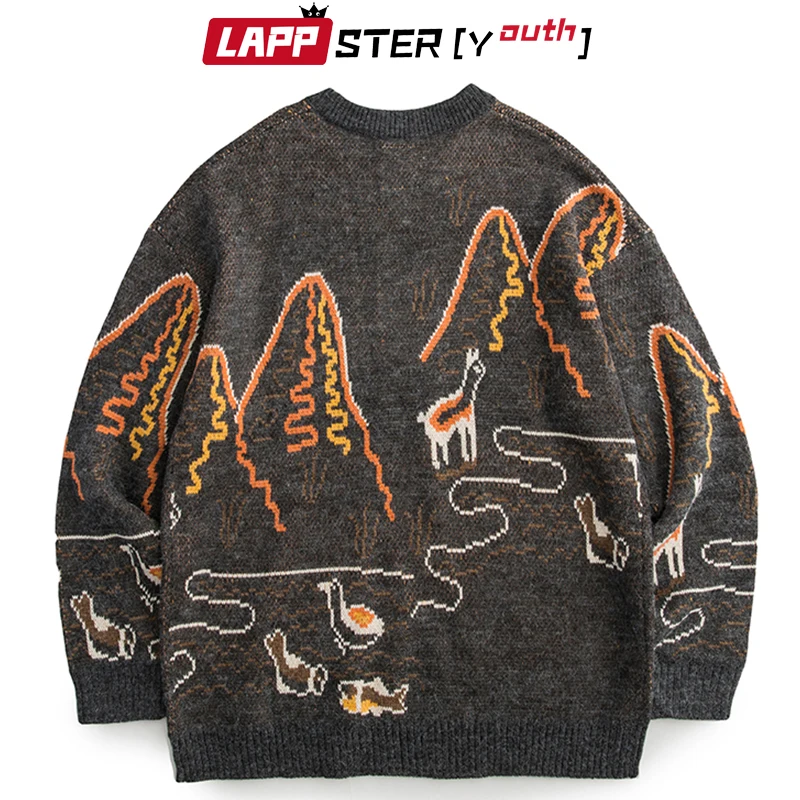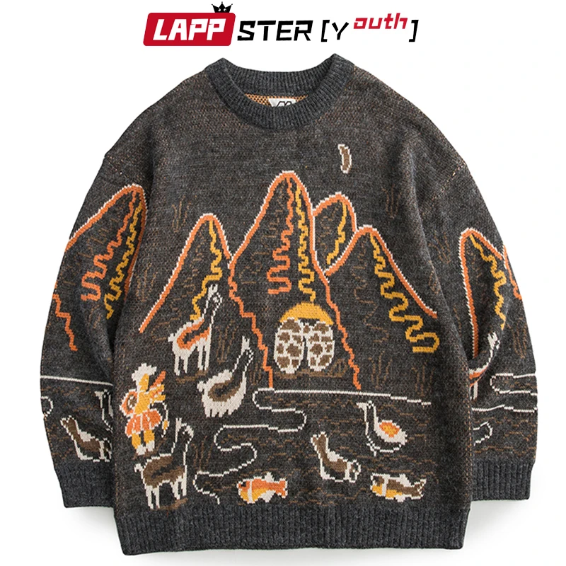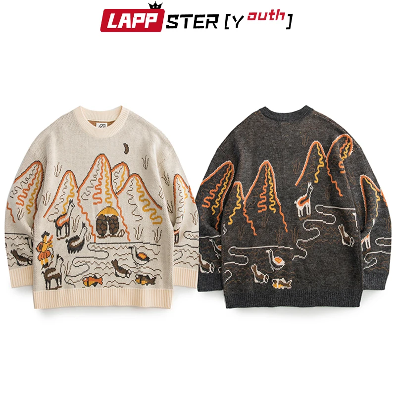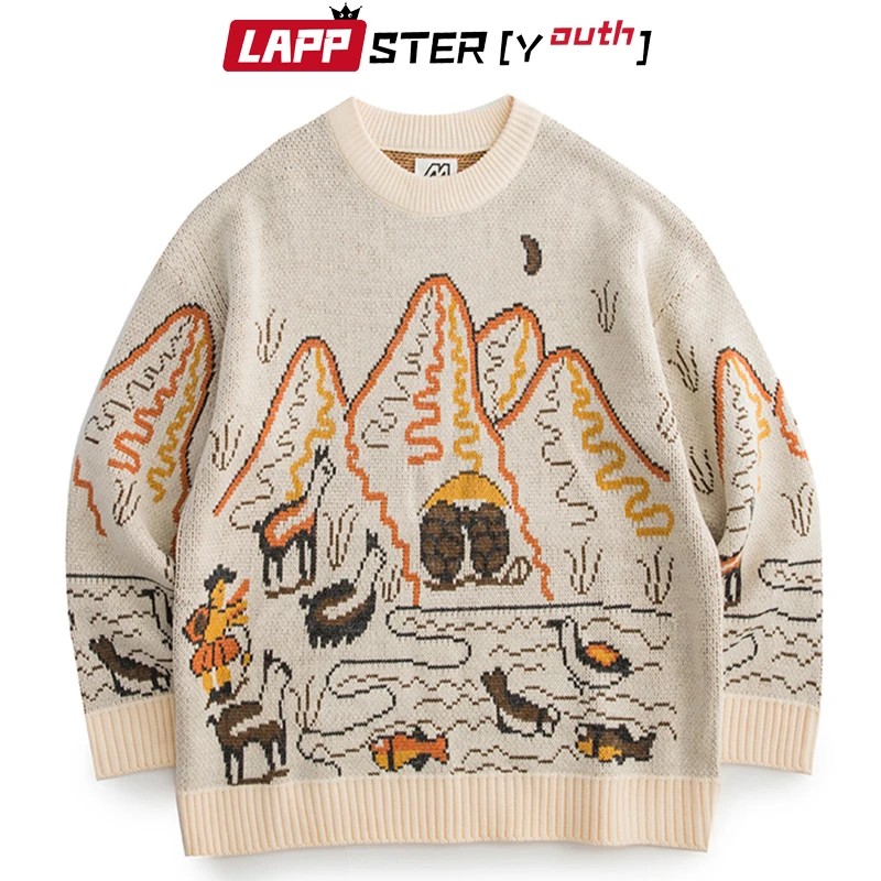 LAPPSTER-Молодежные мужские Мультяшные горы, модель 2022 года, мужские корейские винтажные милые пуловеры, мужской мешковатый теплый вязаный свитер