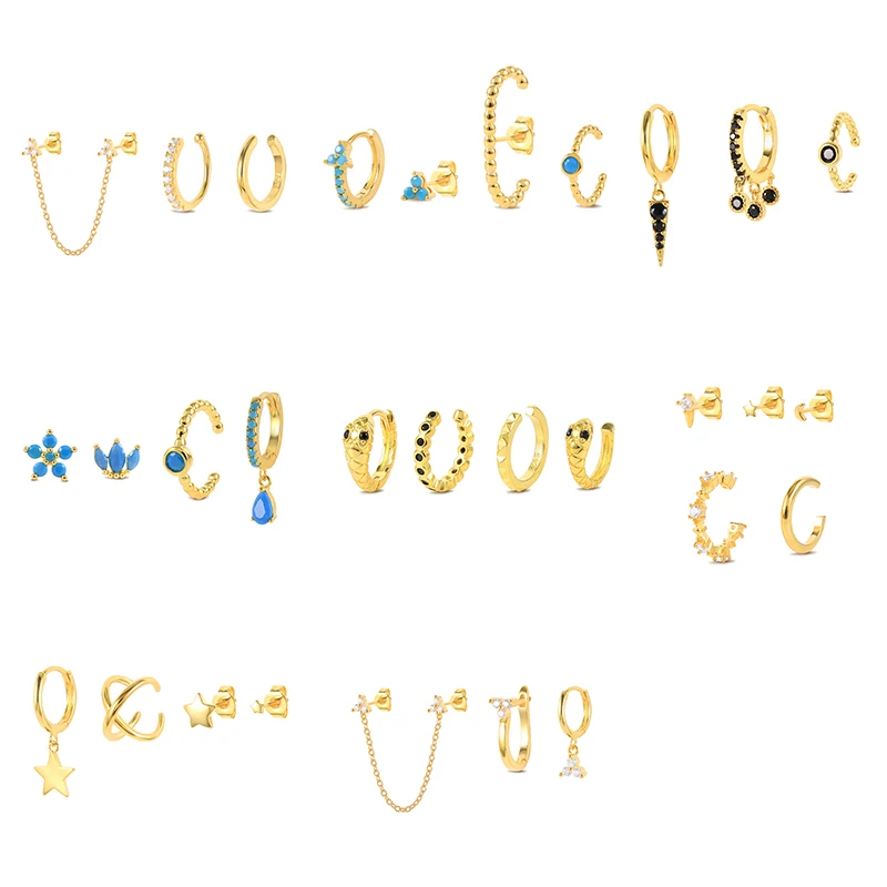 Женские и мужские серьги CANNER 5 шт.компл. Позолоченные маленькие ...