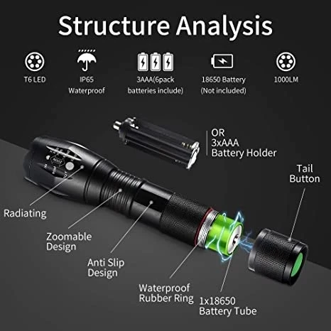 ☀Супер яркий с 5 режимами-Мощный светодиодный COB генерирует Блестящий большой прожектор области или идеально сфокусированный прожектор. Регулируемый/масштабируемый фокус с 5 режимами: высокий-средний-низкий-стробоскоп-SOS (для аварийной ситуации). Управляется 3 * AAA батареями или 1*18650 литий-ионная аккумуляторная батарея.☀Высококачественное качество и долговечность: Изготовлен из высококачественного алюминиевого сплава, этот светодиодный фонарик AmeriLuck является твердым и прочным, край разработан острым и сильным, может легко сломать окна в случае автомобильной аварии.☀Водонепроницаемость: Может использоваться в любую погоду. Корпус из алюминиевого сплава не ржавеет. Можно использовать каждый день, например, для устранения неисправностей, езды на велосипеде, пеших прогулок, кемпинга, прогулок с собакой или для экстренной ситуации, выживания и т. д.☀Пакет MUTIPLE доступен-каждый предмет упакован в индивидуальную упаковку, может быть милым подарком на день рождения или Рождество для членов семьи, друзей, коллег, пожилых родителей/взрослых родителей и детей. Не забудьте держать один в бардачке или багажнике в вашем автомобиле, вам это обязательно понадобится.