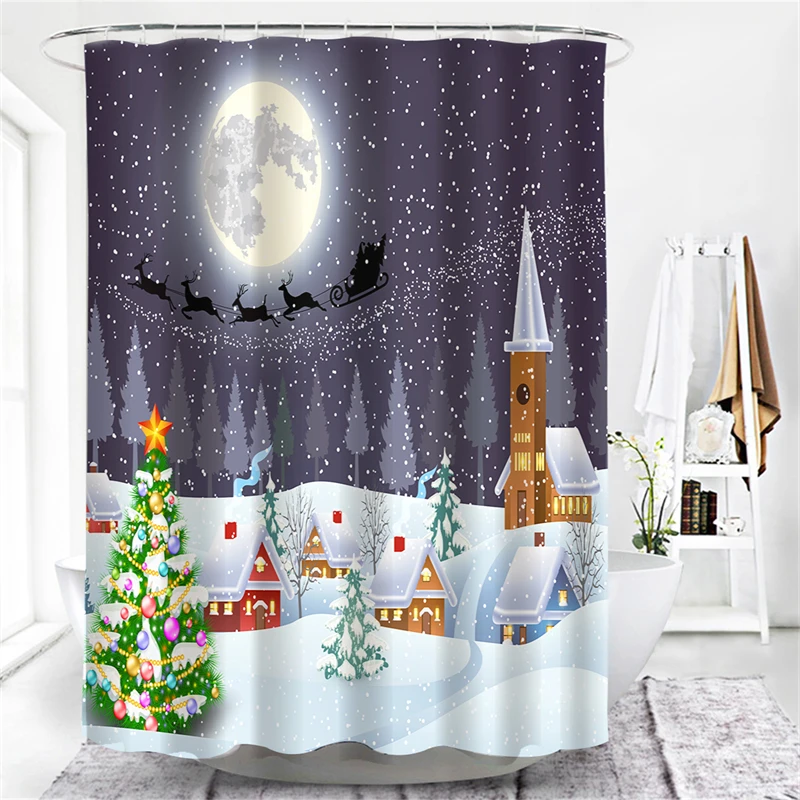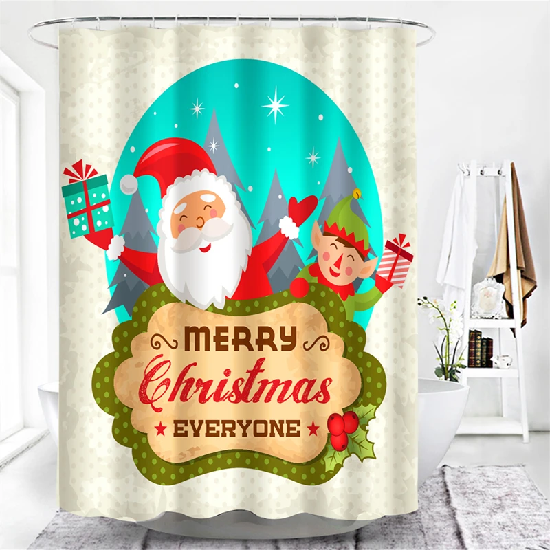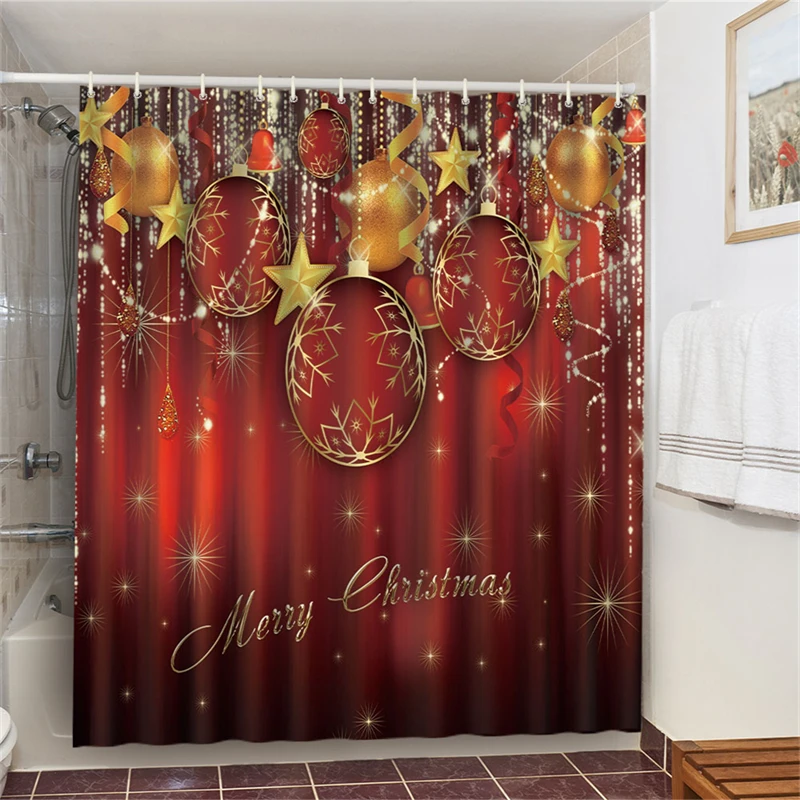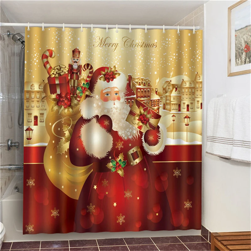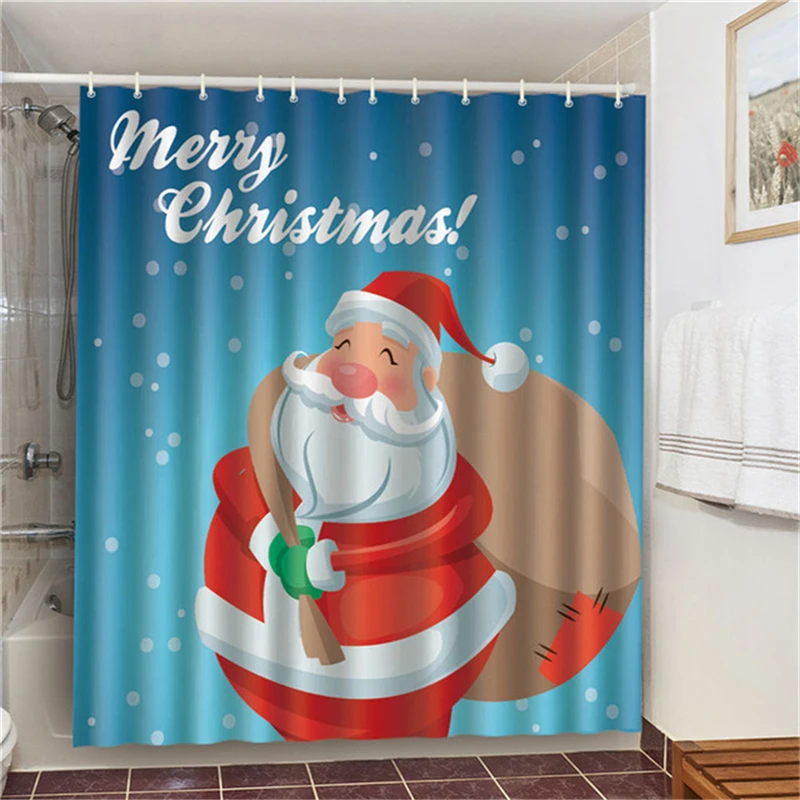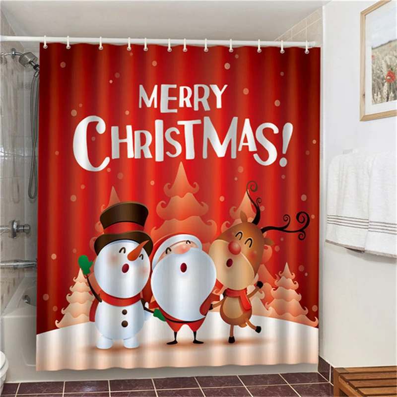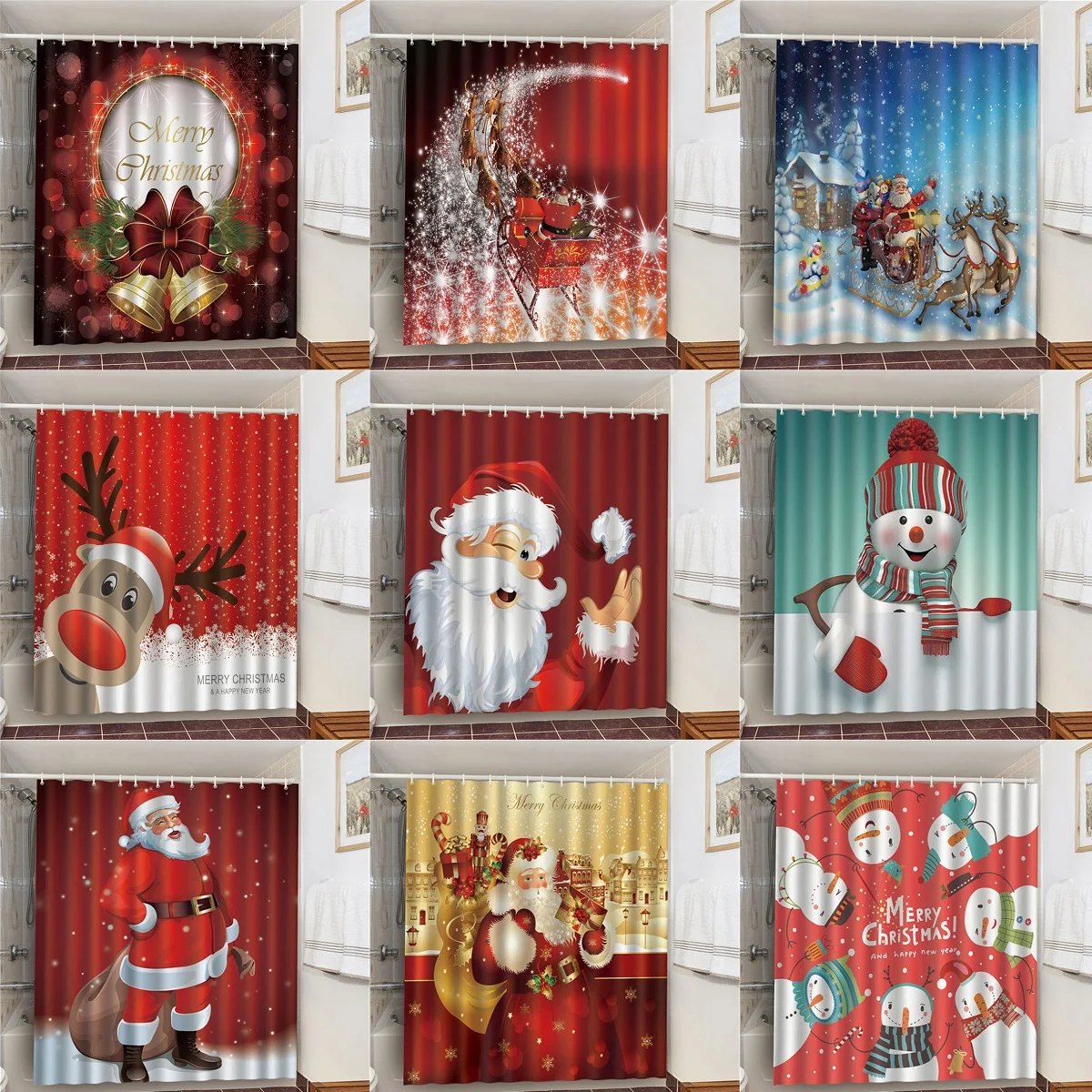 2022 Рождественский Декор, шторы для душа из искусственной ткани с Санта-Клаусом, лось, снеговик, водонепроницаемая ванна, занавеска для купания