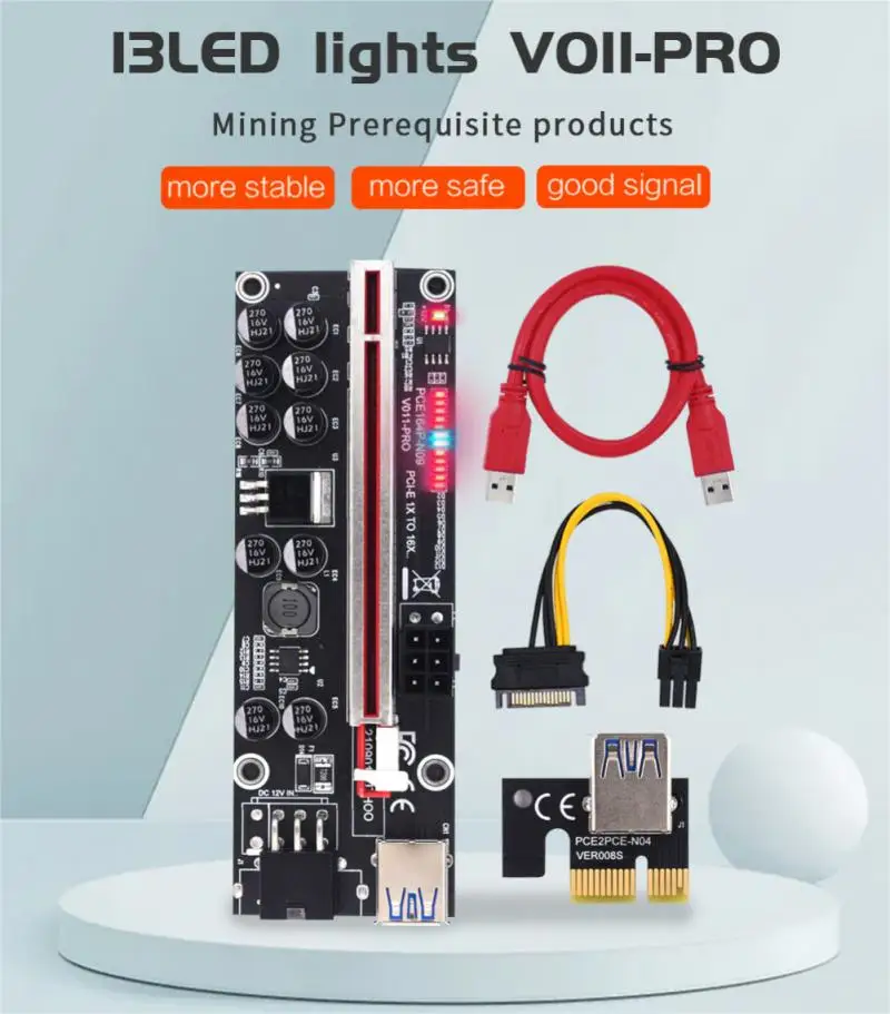 Адаптер PCI-E GPU отличается стабильным сопротивлением и имеет 13 светодиодный светильник для отображения рабочих состояний.