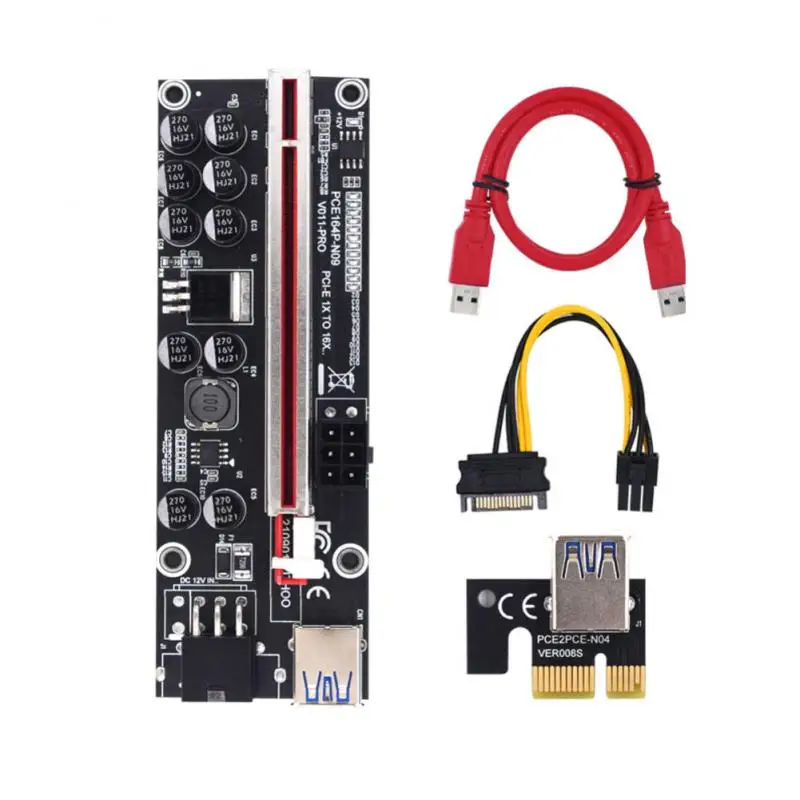 Новейший V011-PRO Pcie Riser Pci Express Riser для видеокарты Pci-e 1x To 16x Riser Card Dual 6pin для BTC Miner Cable USB3.0 Mining
