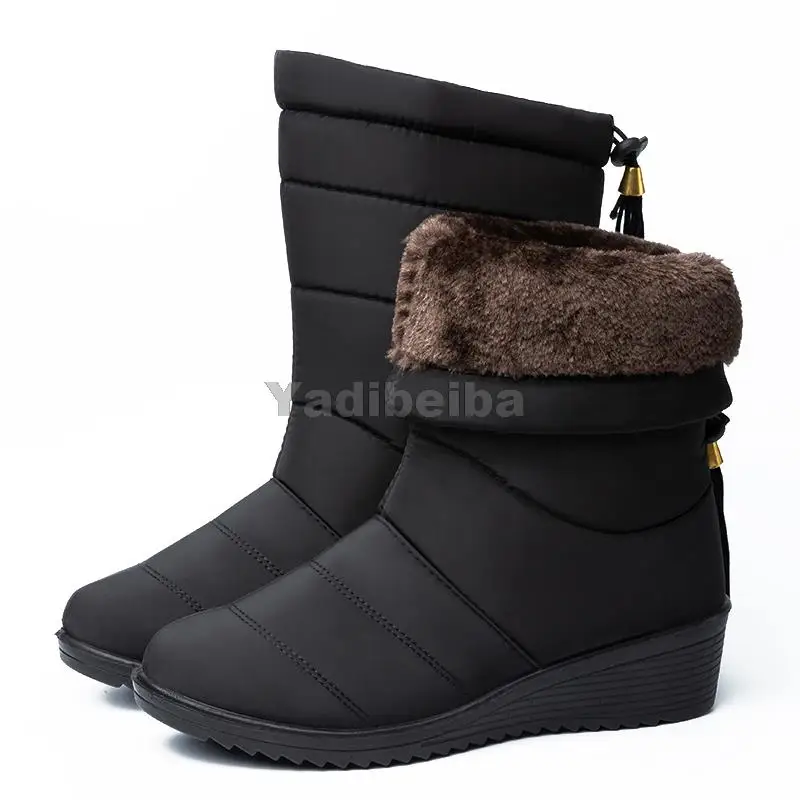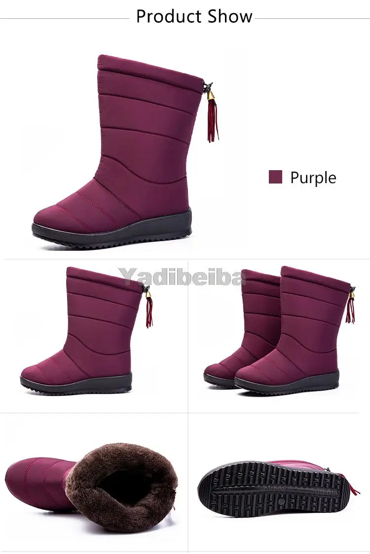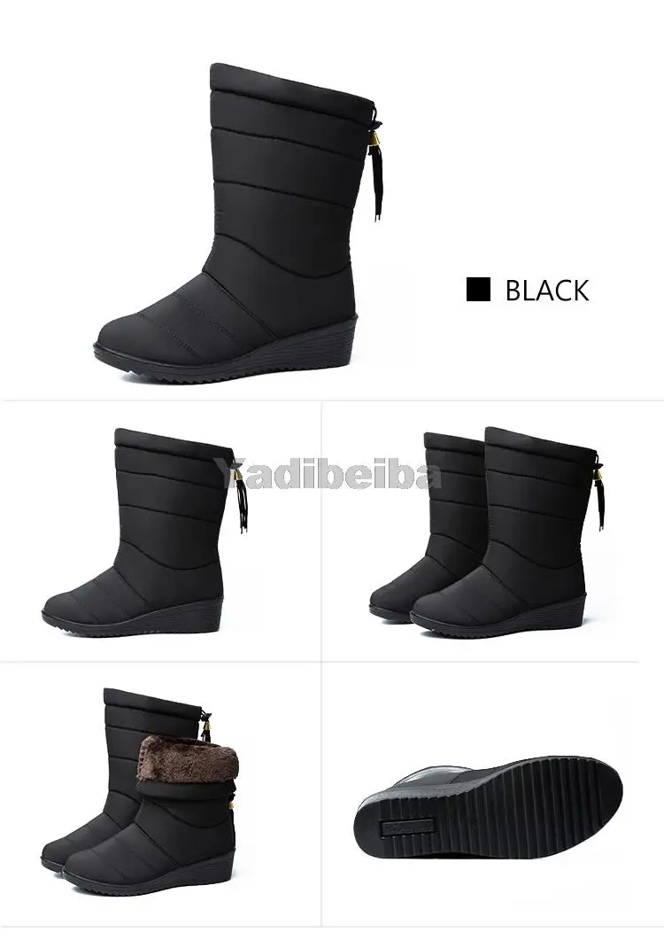 Женские зимние ботинки до щиколотки, женские зимние ботинки из искусственного меха, Женская водонепроницаемая обувь для женщин, черные пуховые ботинки, женские ботинки