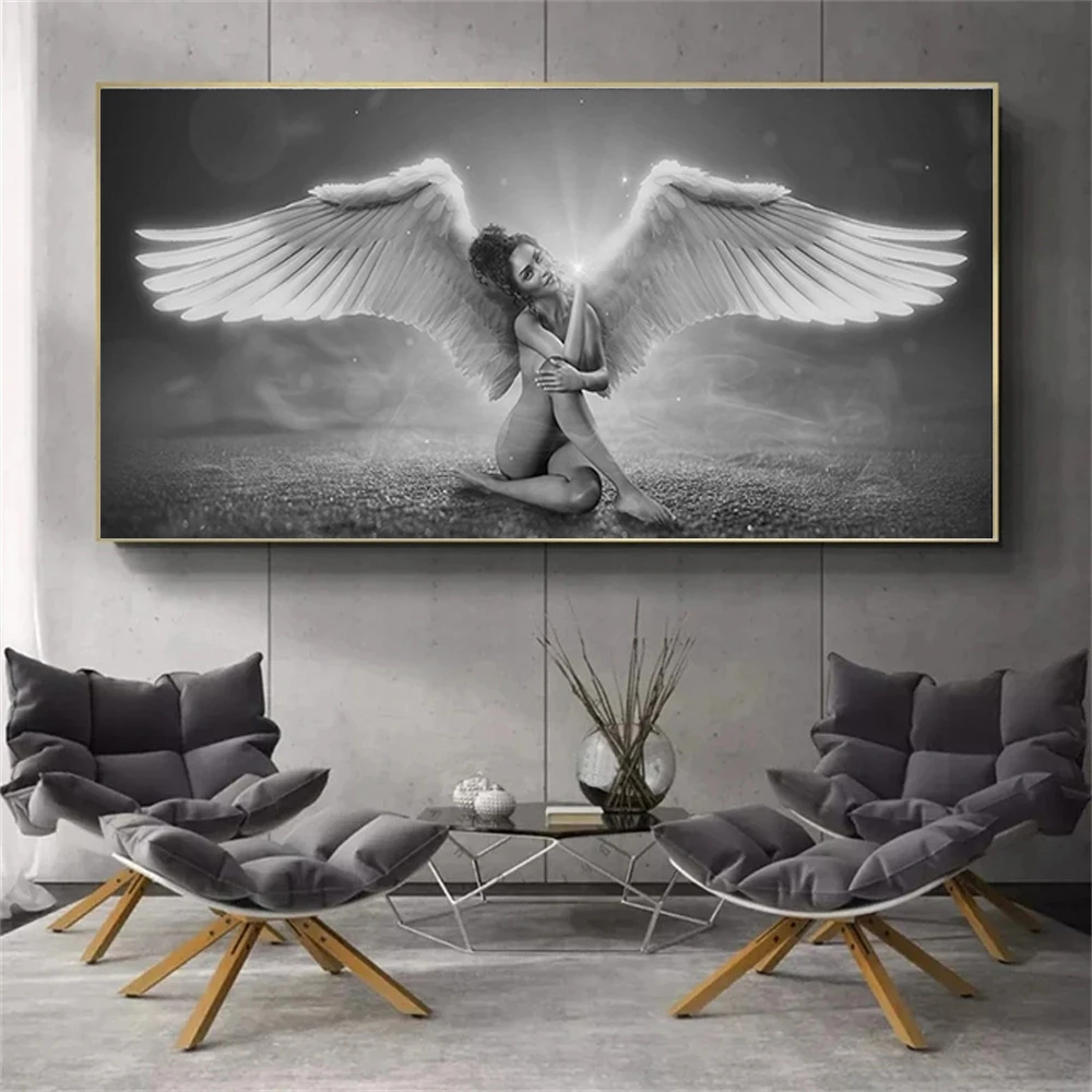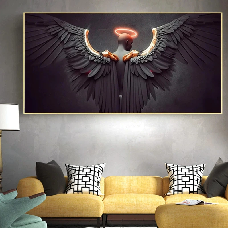 Скандинавский холст с ангелом и черными крыльями, обнаженные крылья...