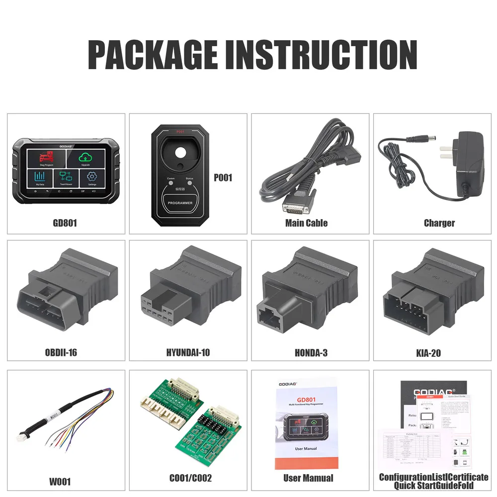 GODIAG GD801 Основные характеристики:1. Полная конфигурация:Иммобилайзер + регулировка одометра + EEPROM/адаптер PIC + OBDII + ABS + обучение передаче + сброс CVT + соответствие батареи + EPB + TPS + сброс SRS + низкая шина + сброс угла рулевого управления + Сброс DPF + масло код сопла.2. Мощная ключевая функция программирования.3. Диагностическая Функция: классификация специальной функции:ABS, EEPROM адаптер, Battery match, CVT learning, EPB, Gear learning, иммобилайзер, TPMS (низкая шина) Сброс, кластерная калибровка, сброс угла рулевого управления.Специально разработан для платформы Android с четким и удобным интерфейсом.4. База данных технического обслуживания: оснащена мощной базой данных.5. Один ключ обновления: встроенный режим WIFI может реализовать загрузку приложений и диагностическую функцию с помощью одного ключа обновления.6. Настройка системы: установка VCI формирования, языка, блока, регистрации данных, информации пользователя и т. Д.7. Удаленная помощь: Достижение удаленной помощи с помощью этой функции.8. Поддержка нескольких языков: английский, итальянский, испанский, французский, Geman, португальский, польский, русский и т. Д.9. Поддержка малайзийского протона Perodua сДополнительная лицензия на программное обеспечение, Но вам нужно купить лицензию10. С Бесплатным Подарком GT100 датчик OBDIIКлючевые функции программирования:Ключи программирования и стиранияПульт дистанционного управления программированиемПинкод для чтенияЧтение ключевых номеровЧип EEPROM для чтенияДиагностика OBDIIОсновные направления программирования:-Для Ford ESCAPE/ECOSPORTt/ESCORT/EVEREST/FIESTA и т. Д. Поддерживает до 2018-Для Renault CLIO/CAPTURE/DUSTER/KOLEOS и т. Д. Поддерживает до 2015-Для GM EQUINOX/MALIBU/TERRAIN поддерживает до 2020-Для GM CASCADA /ENCLAVE/REGAL/ESCALADE/CAMARO/IMPALA и т. Д. Поддерживает до 2019-Для Hyundai ACCENT/ELANTRA SEDAN/G90/GENESIS/KONA/SONATA и т. Д. Поддерживает до 2019-Для Landrover DISCOVERY 4/RANGE ROVER EVOQUE поддерживает до 2015-Для Volvo S60/V40/XC60 поддерживает до 2017-Для SUBARU ASCENT/CROSSTREK/FORESTER и т. Д. Поддерживает до 2019