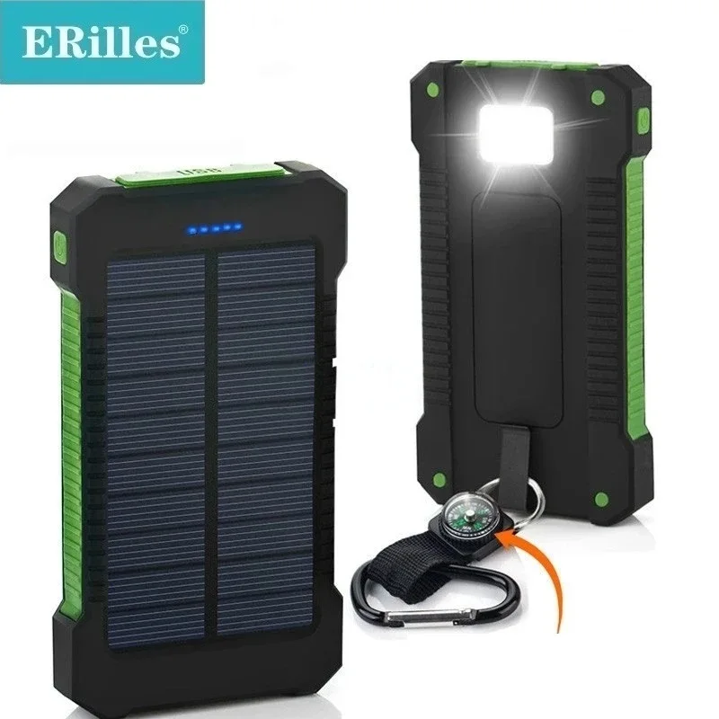 Портативное зарядное устройство на солнечной батарее, 2 порта USB, с фонариком, цвета на выбор