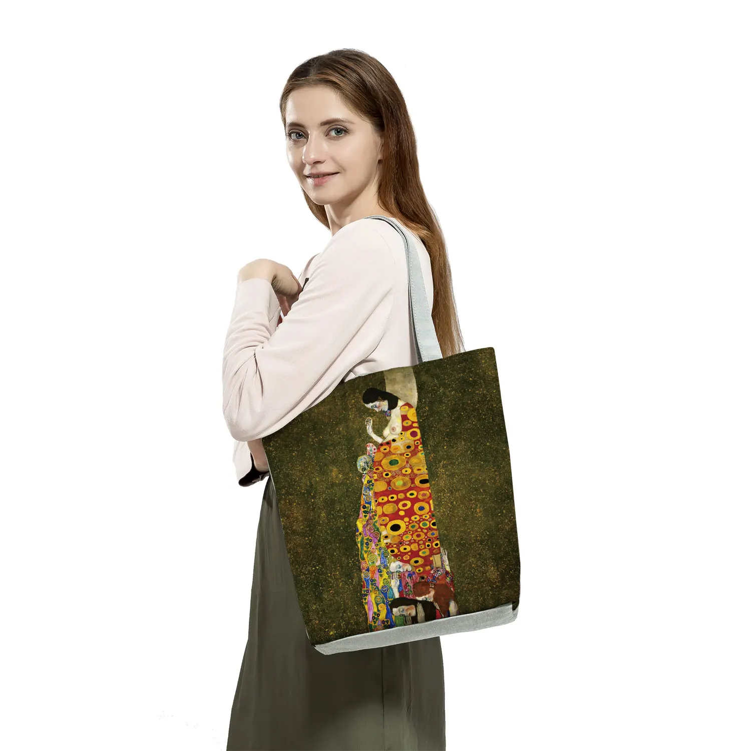 Индивидуальные картины маслом слезы ткань сумки-шопперы для женщин Gustav Климт дамская модная сумка большая емкость сумки для покупок