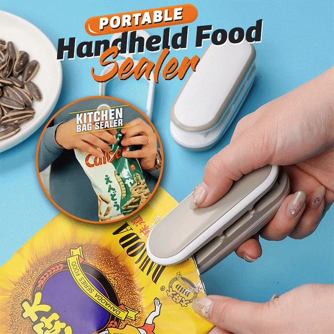 Купите его, портативный ручной упаковщик еды, который поможет вам быстро разрезать мешок, а затем поможет вам запечатать его.