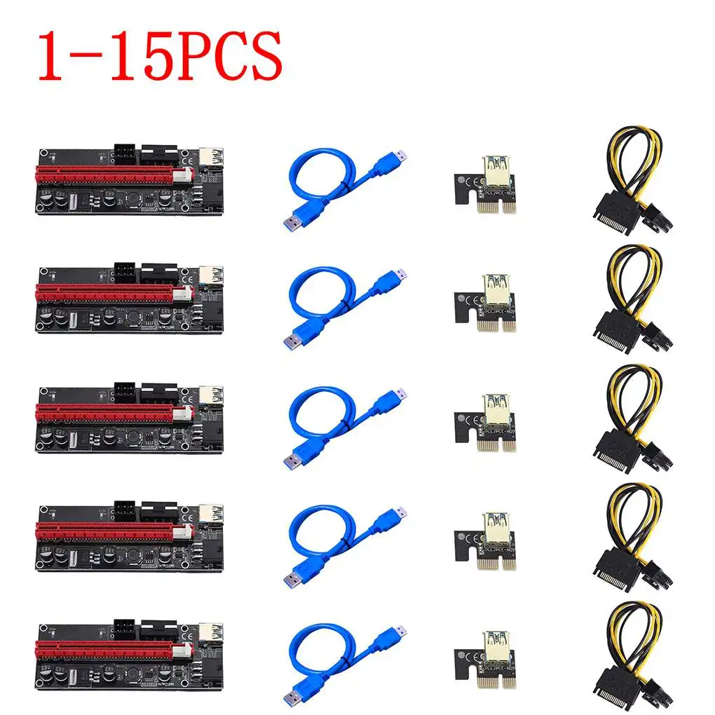 1-15 шт. Новинка VER009 USB 3,0 PCI-E Riser VER 009S Express 1X 4x 8x 16x удлинитель адаптер карта SATA 15pin до 6 pin кабель питания