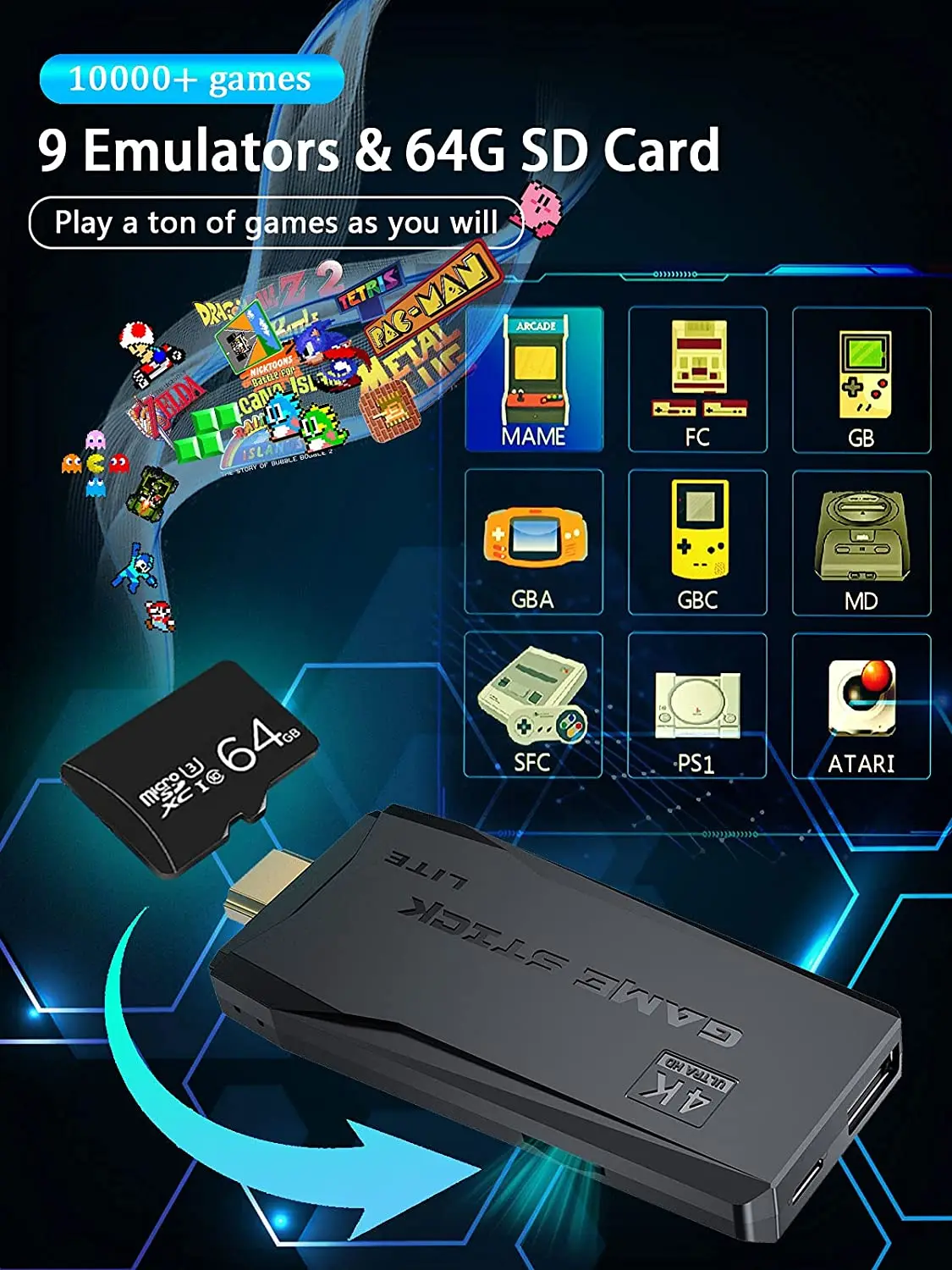 Видеоигровые консоли M8 4K HD 2,4G беспроводные 10000 игр 64 Гб рет...