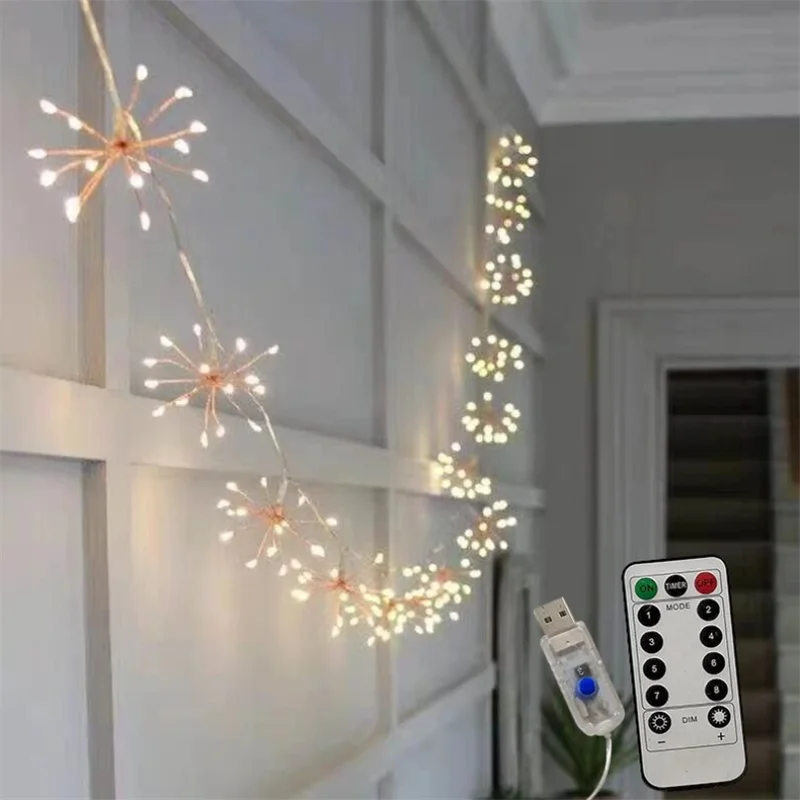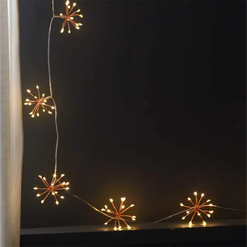 Светодиодсветильник гирлянда с фейерверком, сказосветильник гирлянда с медным проводом, гирлянда с питанием от USB и аккумулятором, гисветильник для украшения свадьбы и Рождества