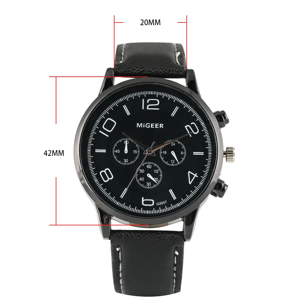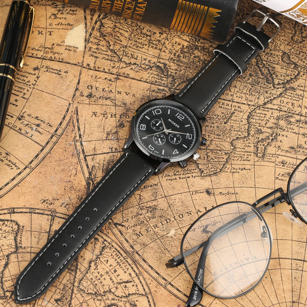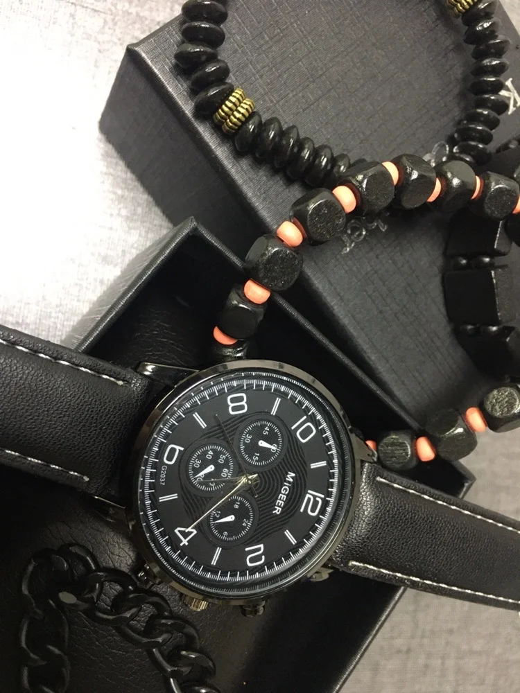 Часы, подарочный набор для мужчин, черный кварцевый Циферблат с циферблатом, мужской кожаный ремешок, регулируемые браслеты, модные подарки для мужчин, набор