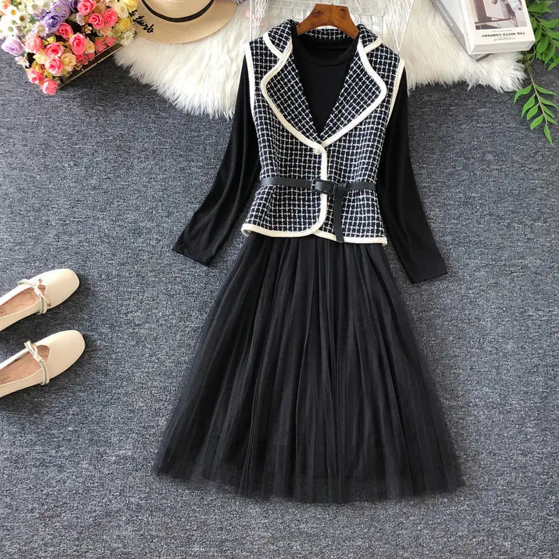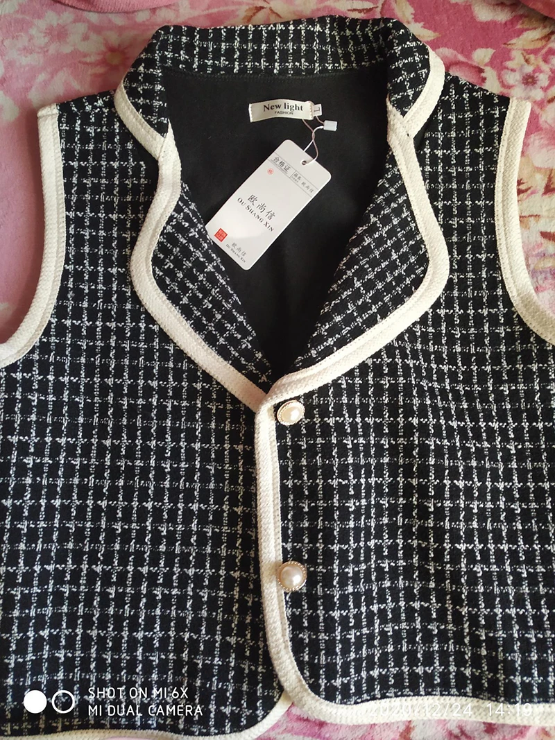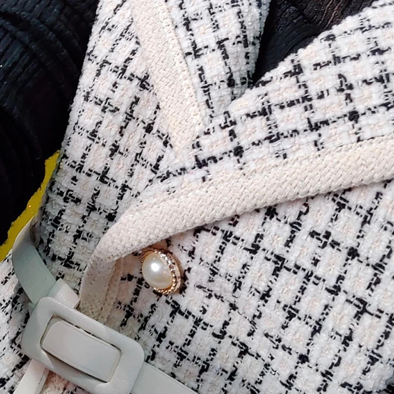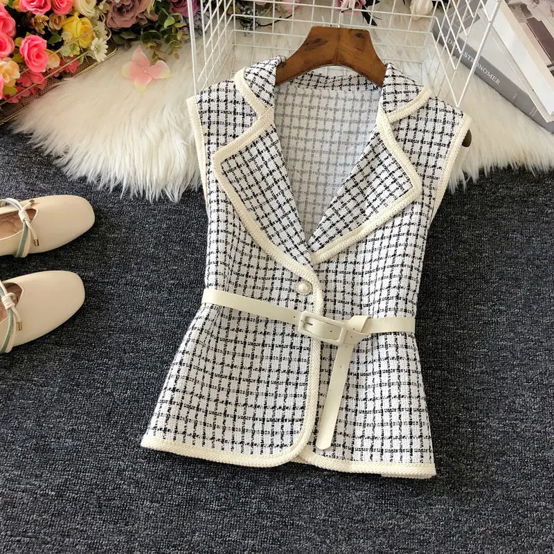 Винтажный клетчатый твидовый укороченный жилет, женский элегантный жилет с отложным воротником и жемчужными пуговицами, Повседневная Верхняя одежда с поясом без рукавов, топы