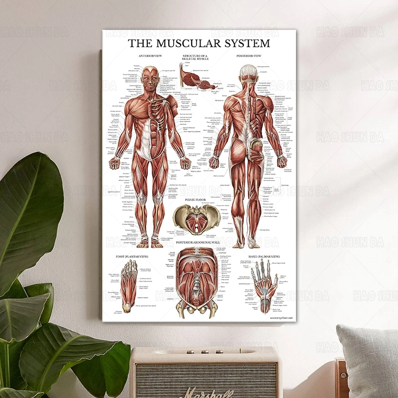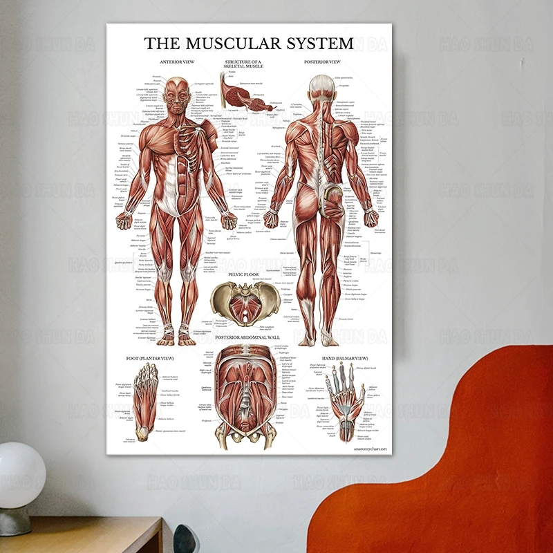 Плакат мышечной системы, карта анатомии человека, HD принты на холсте, настенная живопись, необходимое для ухода за детьми, для студентов здравоохранения