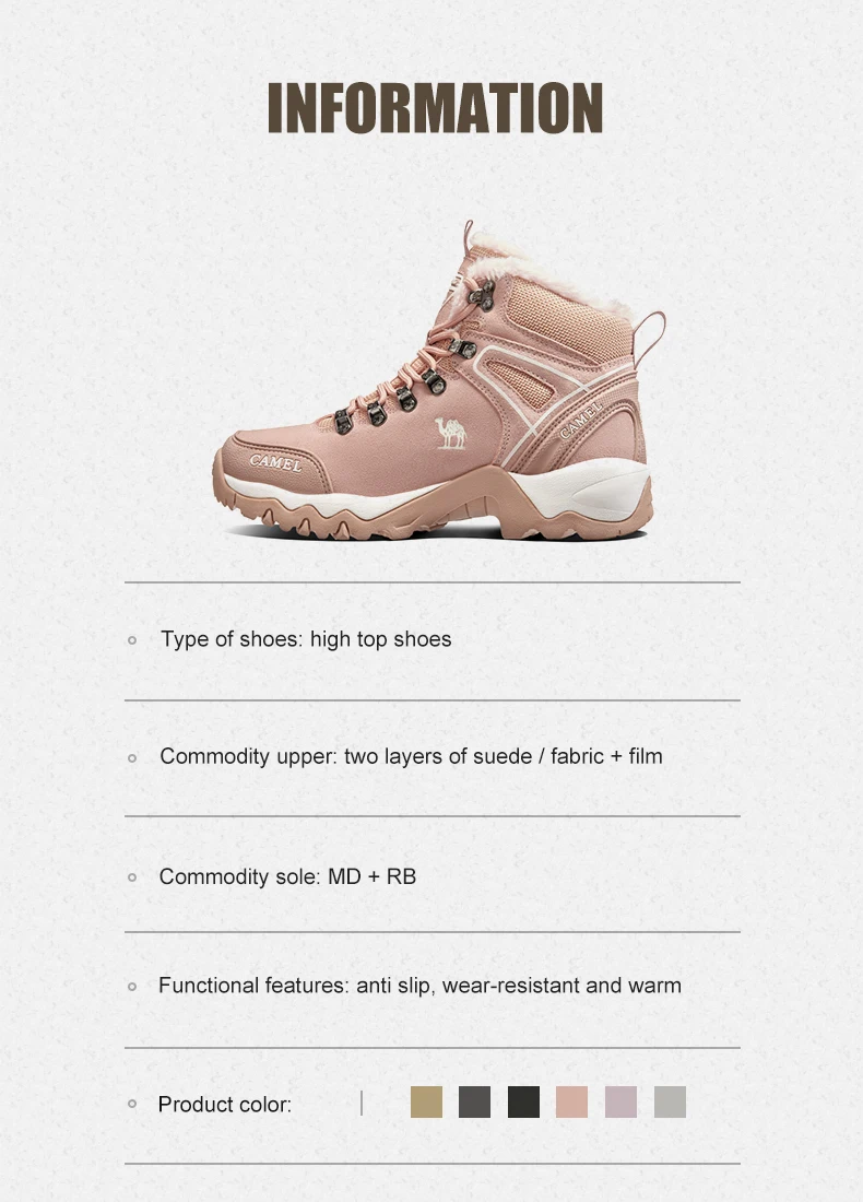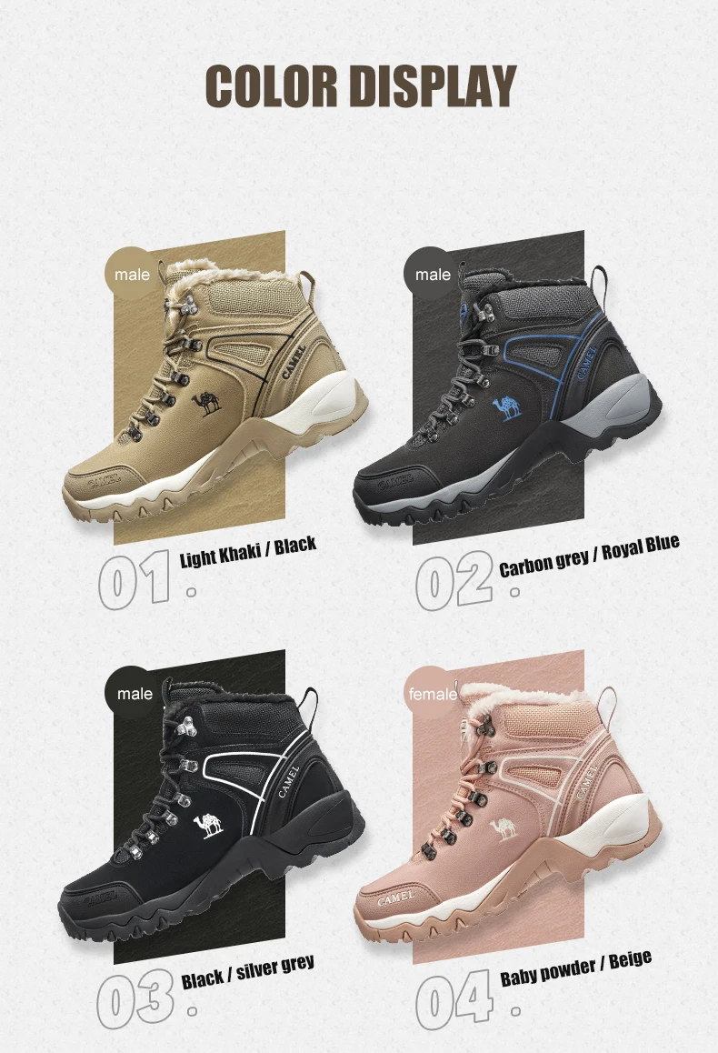 Зимние теплые походные ботинки Golden Camel Для женщин, зимние ботинки с высоким берцем, износостойкие Нескользящие треккинговые ботинки для мужчин