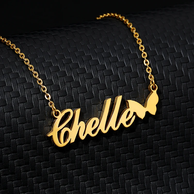 Персонализированные Имя ожерелье с бабочкой Золотое сердце чокер Stainlesss сталь пользовательские ожерелья для женщин мужчин Bijoux Bff ювелирные изделия