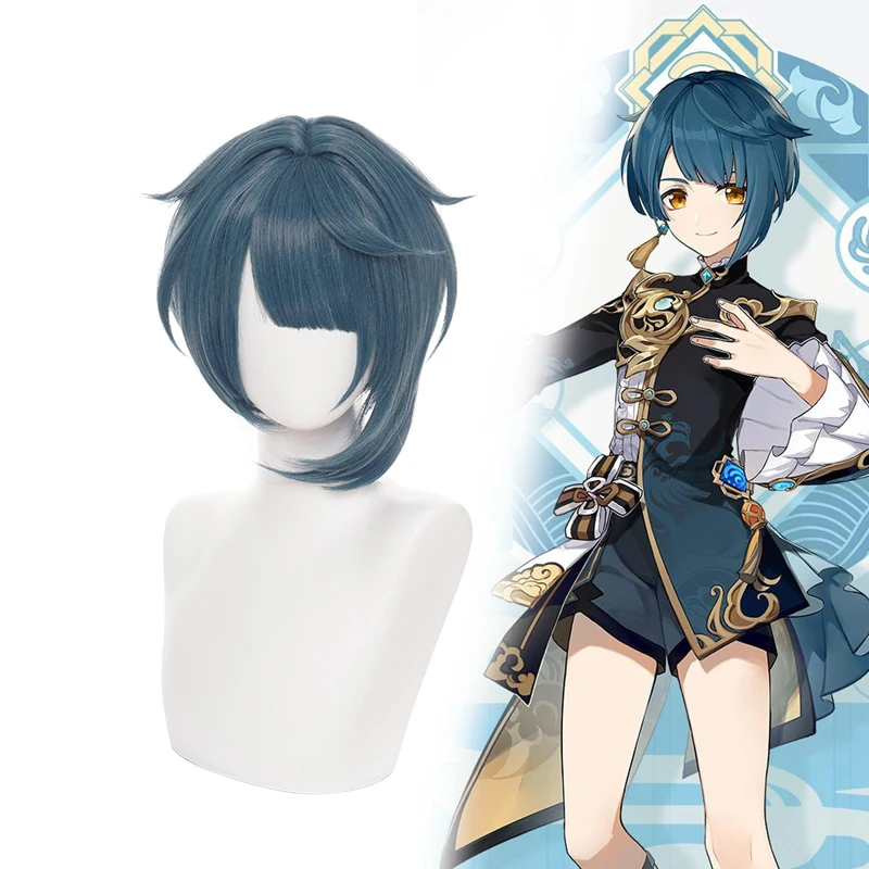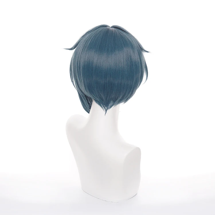 Парик для косплея из аниме Game Genshin Impact Xingqiu, термостойкие синтетические волосы для косплея, короткие, серо-голубые, на Хэллоуин