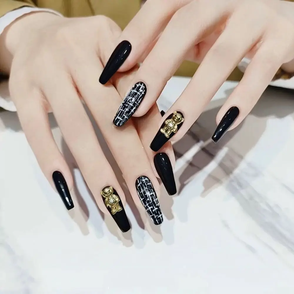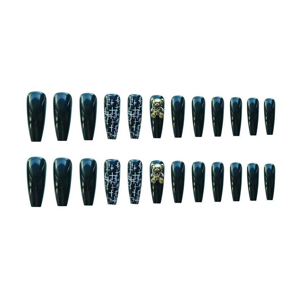Накладные ногти 24 шт.коркор., дизайн гроб с черным медведем, искусственные ногти с клеем, накладные ногти с полным покрытием, нажимайте на ногти