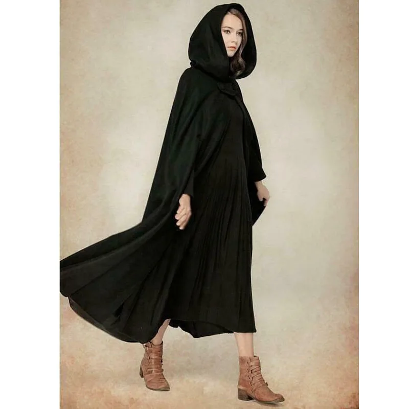 Зимняя Длинная накидка, женский теплый халат, шерстяная накидка с капюшоном, куртка, ветрозащитное пончо, пальто, костюм