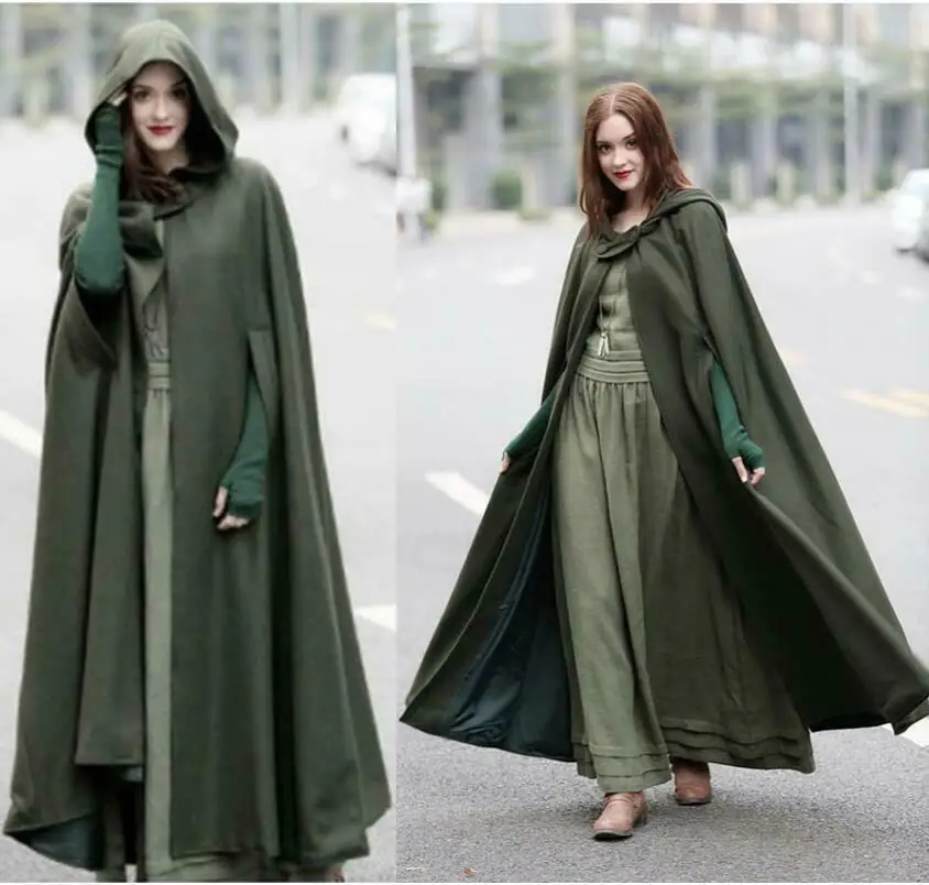IMCUTE Европейская ретро средневековая шерстяная накидка средней дл...