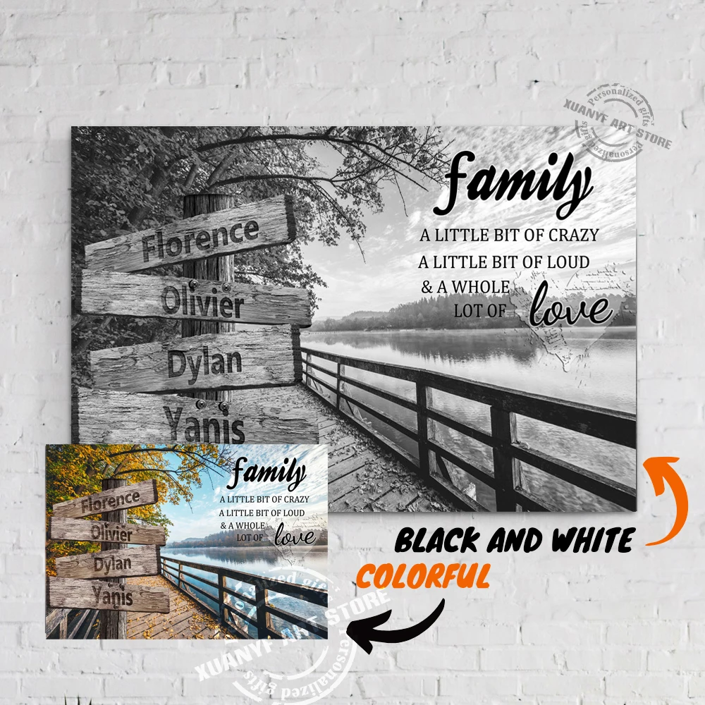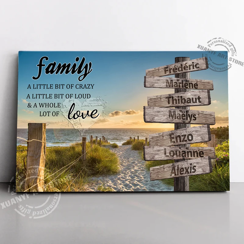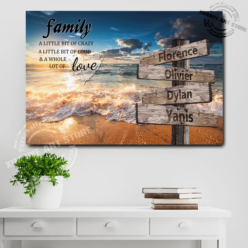 ♥Персонализированная семья заката и пляжа немного сумасшедшая, немного Громкая и полная любовь вдохновляющие цитаты холщовые стены искусства с именем в рамке, пользовательский знак имени