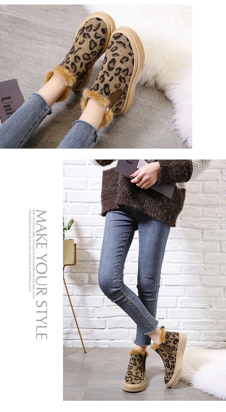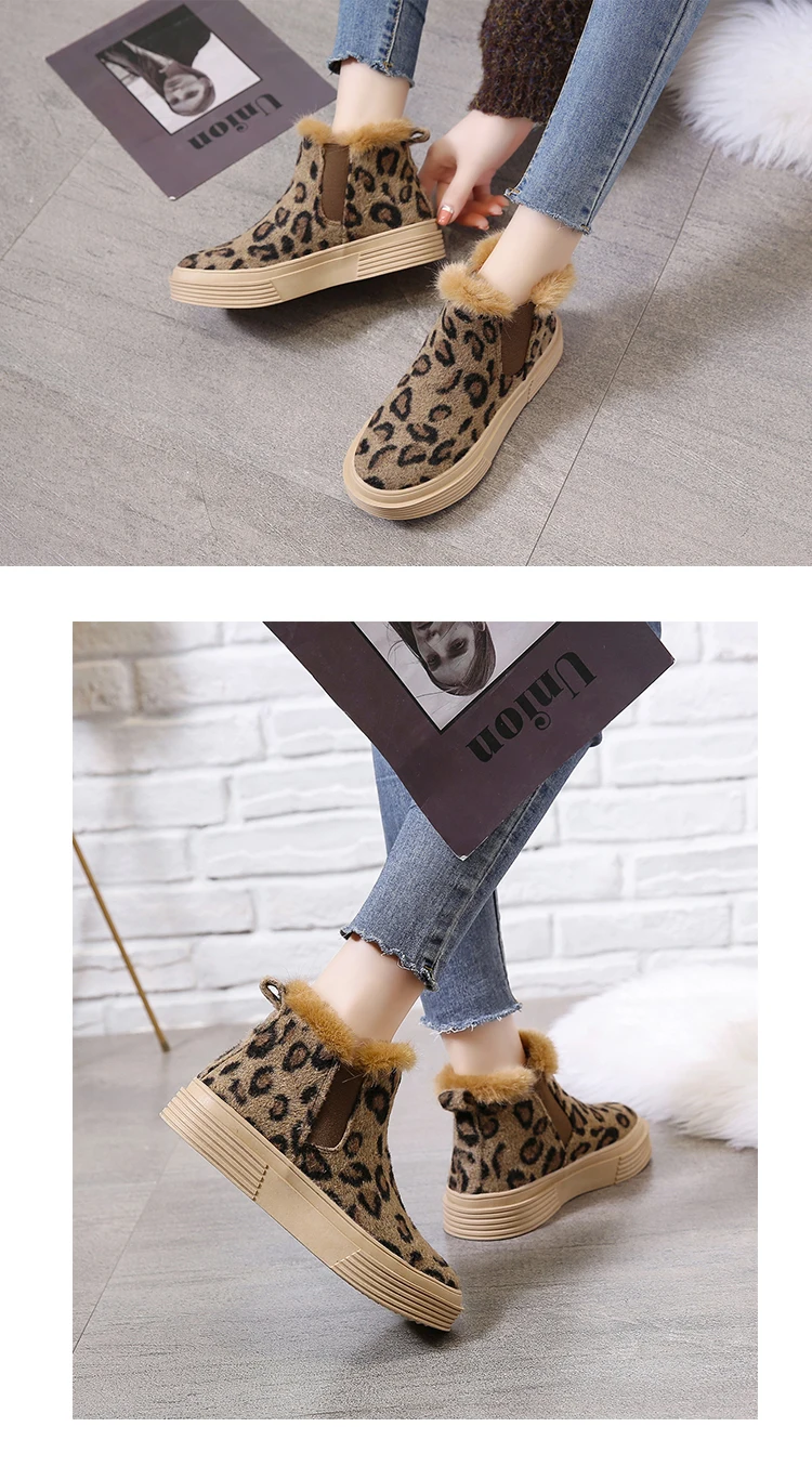 Зимние женские меховые сапоги, высококачественные женские зимние ботильоны, зимняя обувь, женские утепленные теплые хлопковые сапоги в клетку с леопардовым принтом