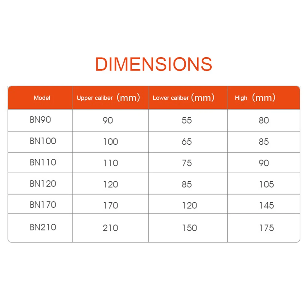 * 5. Диам (верхний + нижний): 90 + 50/100 + 65/110 + 75/120 + 85/170 + 120/210 + 150 мм