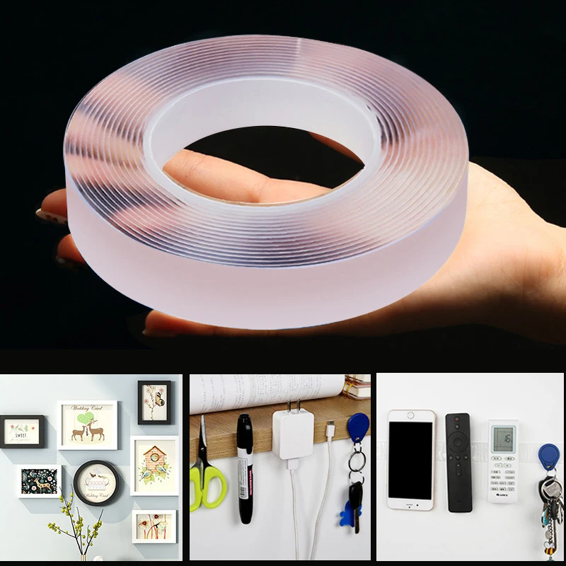 Прозрачная нано-лента 1235 м, акриловые двусторонние клейкие ленты, водонепроницаемые Многоразовые настенные наклейки, прозрачные ленты для ванной комнаты