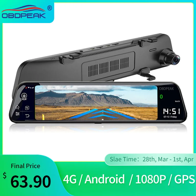 Автомобильный видеорегистратор-зеркало заднего вида, 12 дюймов, 4G, Android, FHD 1080P