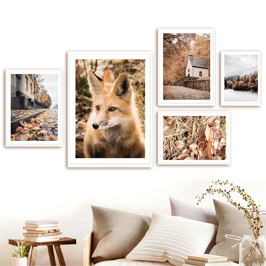Настенная Картина на холсте с изображением тыквы выпадающего леса, сосны, лисы, скандинавские постеры и принты, настенные картины для украшения гостиной