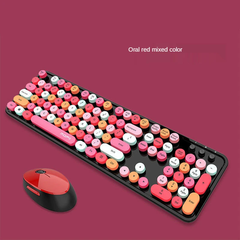 Беспроводная клавиатура разработана с 104 разноцветными клавишами круглой формы в винтажном стиле, которые могут принести вам мультимедийные комбинированные клавиши и небольшую цифровую клавиатуру, обеспечивая профессиональное обслуживание.