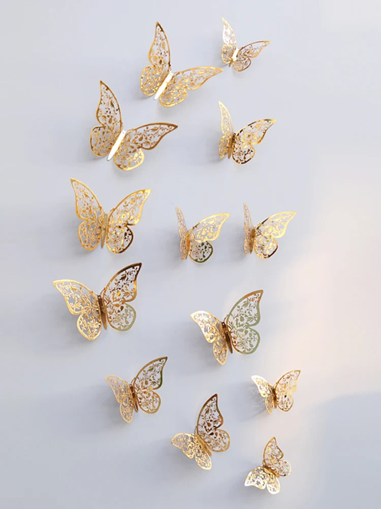 12 шт.лот, розовое золото, Цветные 3D полые золотые серебряные бабо...