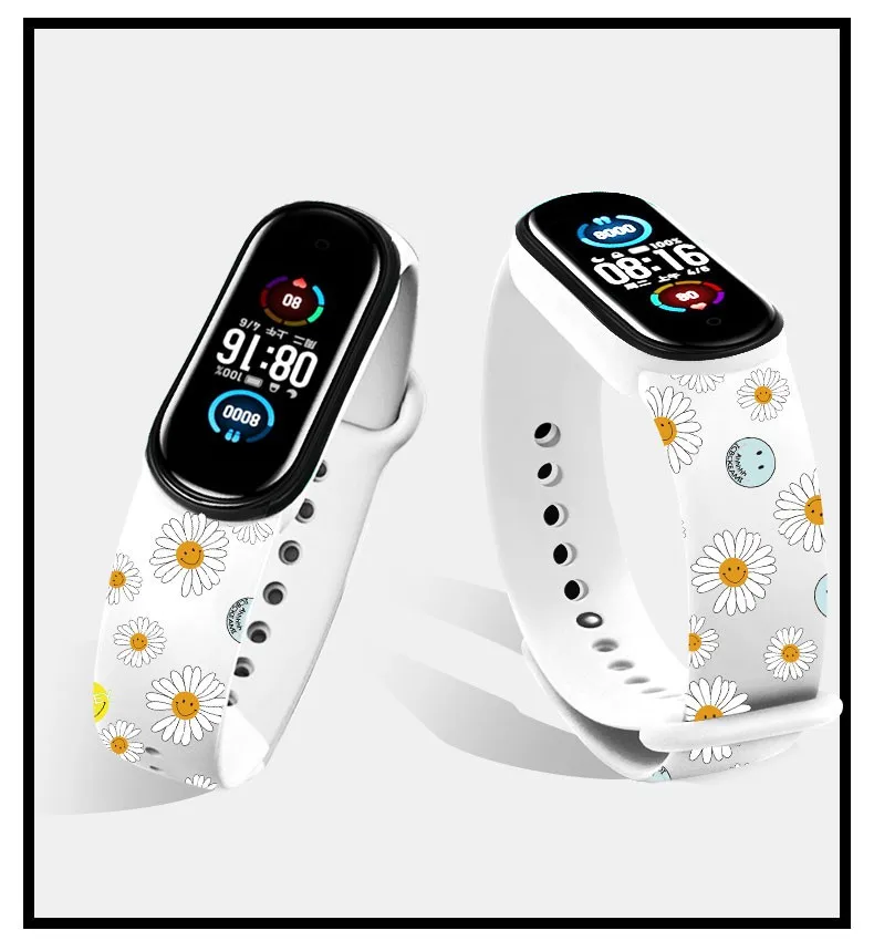 Ремешок силиконовый для Mi Band 6 5 4 3, сменный фитнес-браслет с цветочным принтом для Mi Band 6 5 4 3