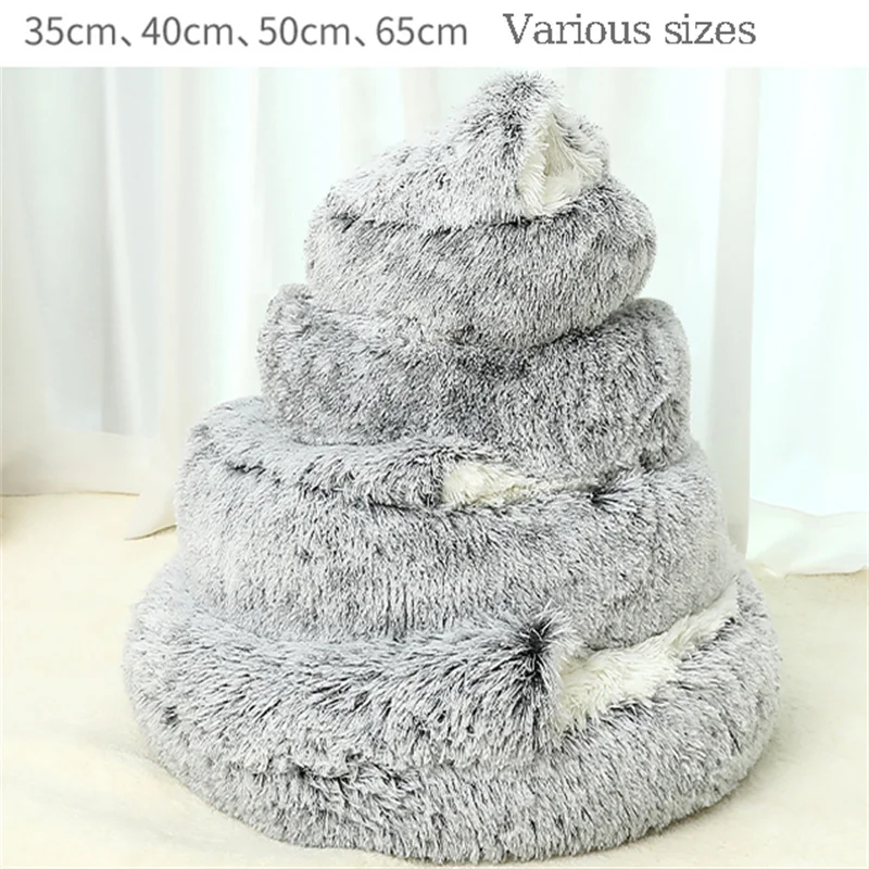 Зимняя кровать для кошек 2 в 1, круглая теплая кровать для домашних...