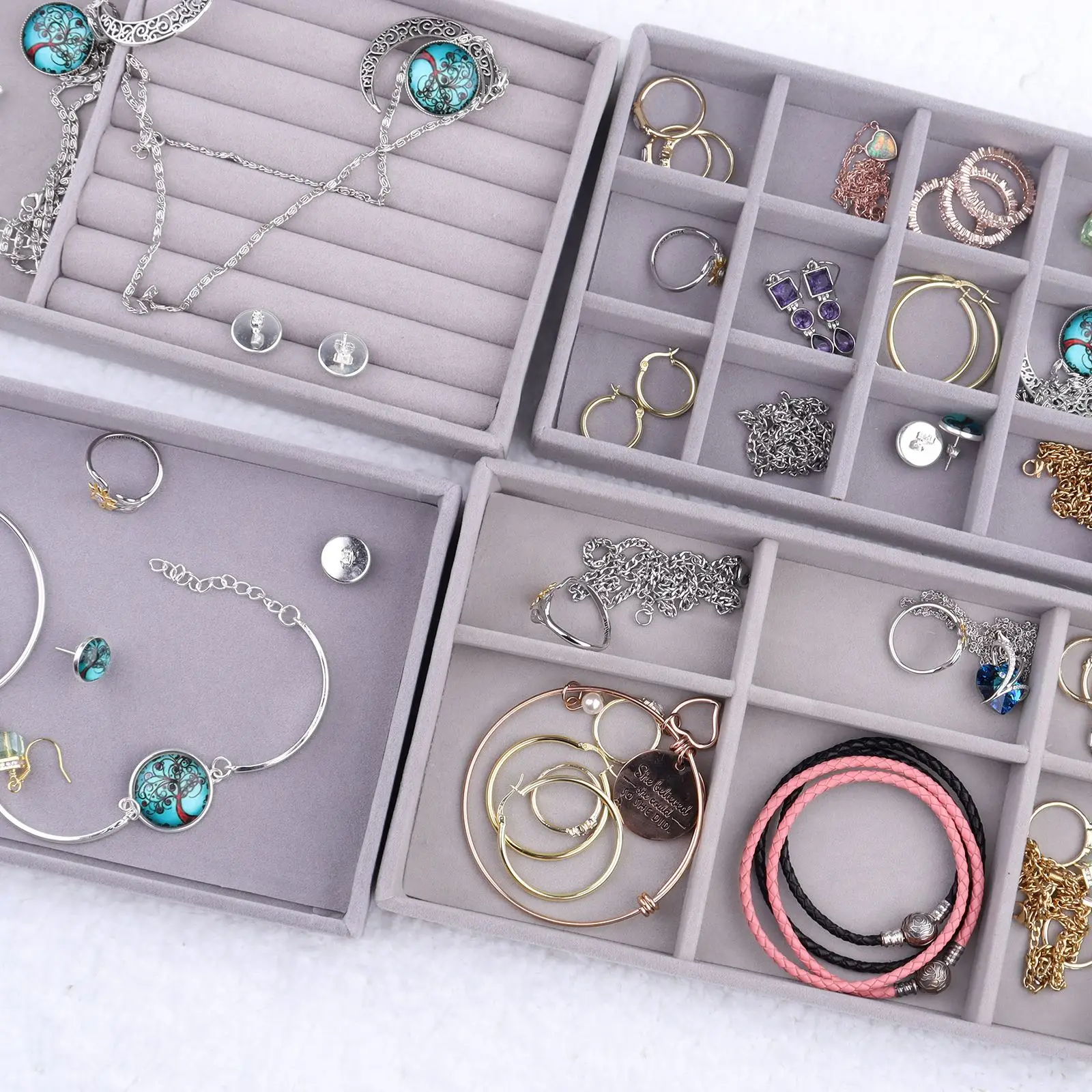 Серый бархатный Штабелируемый органайзер для ювелирных изделий, под...