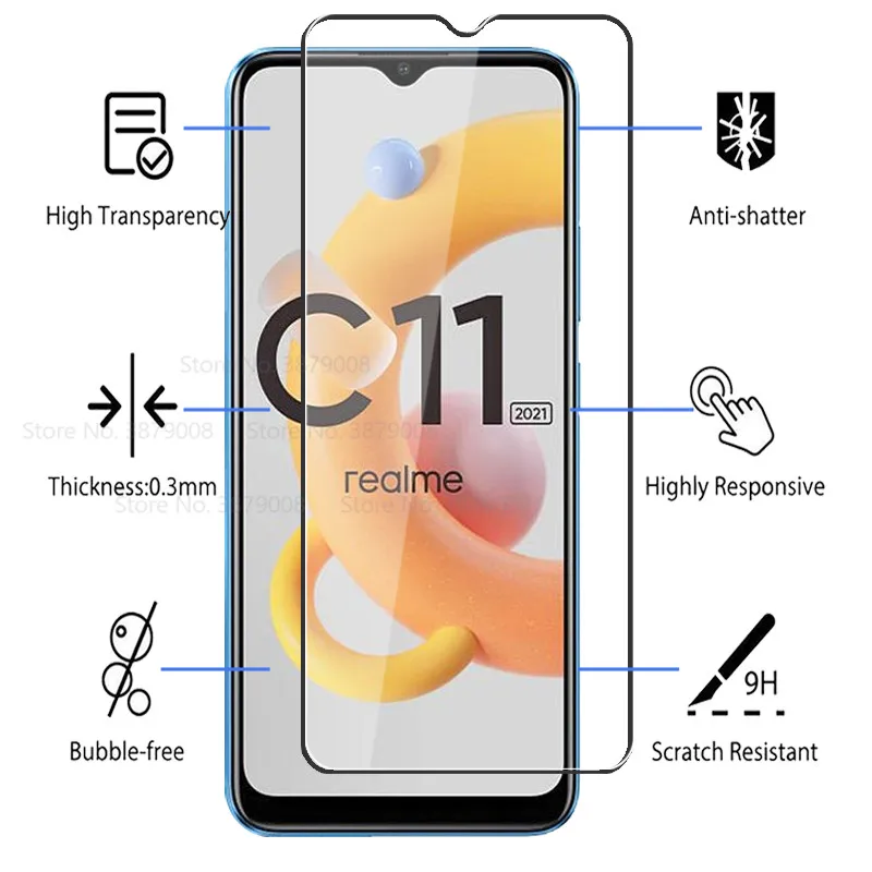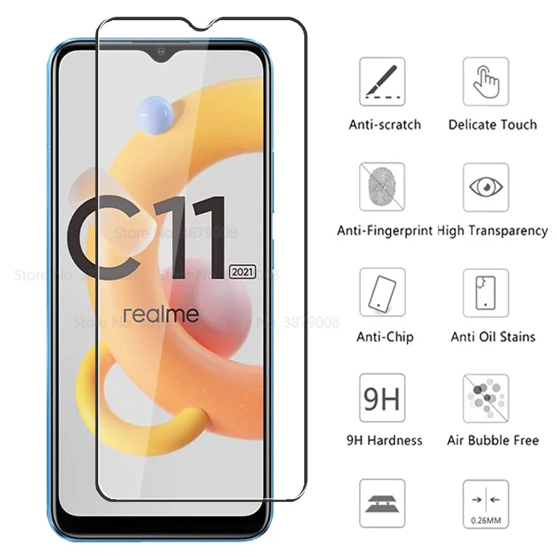 Закаленное стекло с полным покрытием для Realme C11 2021, 3 шт., HD стекло для oppo realme c11 c 11 11c 6,52 дюйма, Защитная пленка для объектива камеры