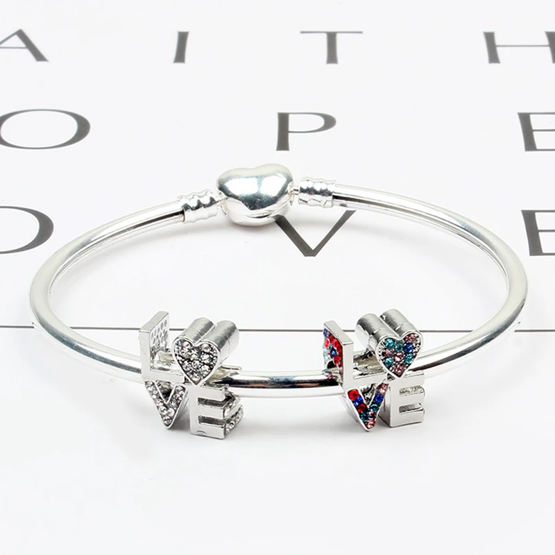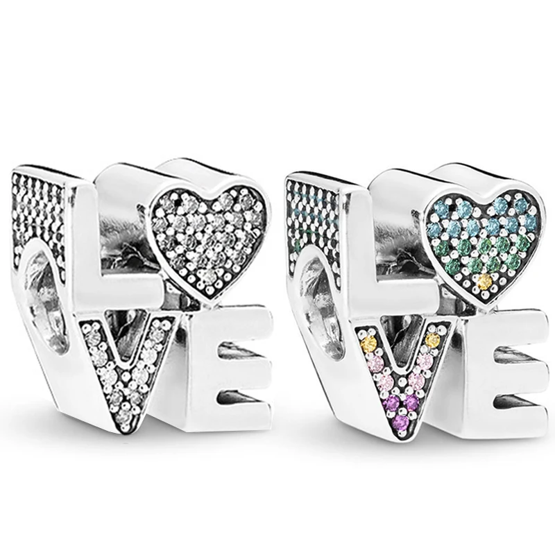 Браслет Pandora с прозрачными фианитами в форме сердца, браслет радужной расцветки с фианитами, бусина на буква сделай сам, ювелирные изделия для женщин, аксессуар для влюбленных, рождественский подарок